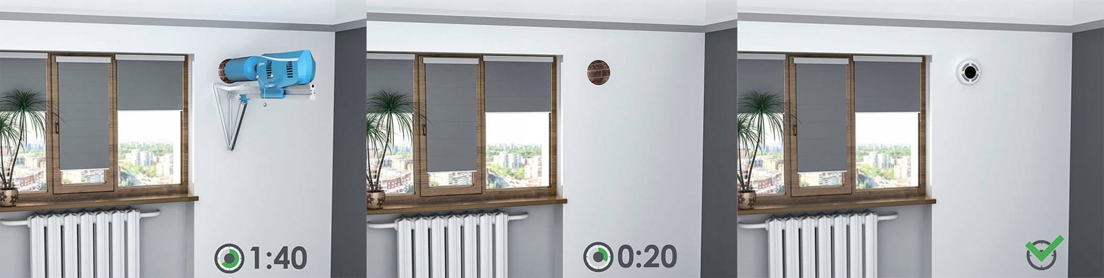 ✔ Łatwość montażu - Specjaliści instalują rekuperator średnio w ciągu 2 godzin, bez uszkodzeń i konieczności remontu całego mieszkania / obiektu.