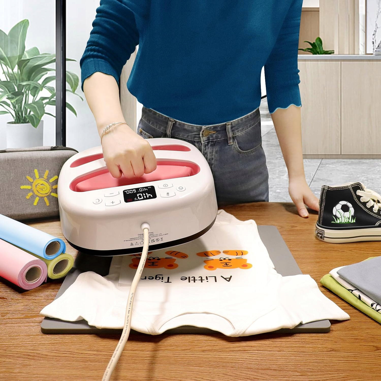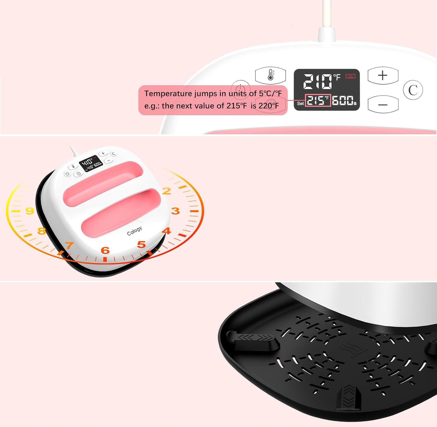 Prasa termiczna Calogy do T-shirtów, przenośna prasa termiczna 10" x 10" (10*10"), maszyna drukarska do tkanin, toreb, poduszek, czapek, projekty z winylu termotransferowego (różowo-biały)