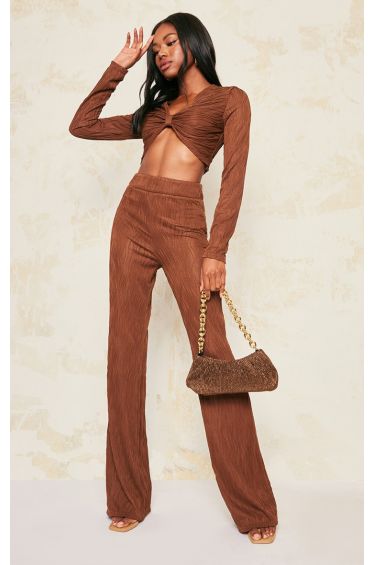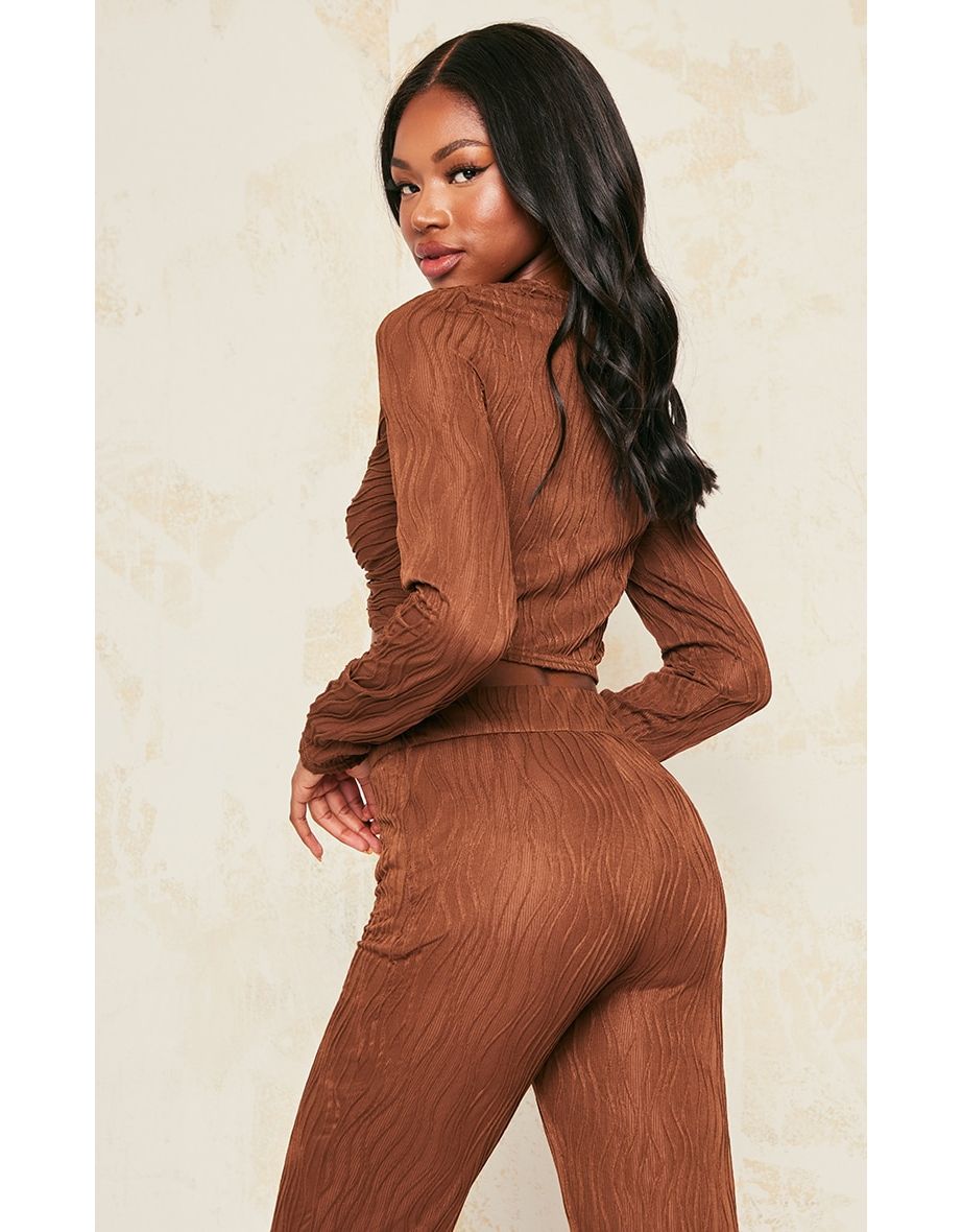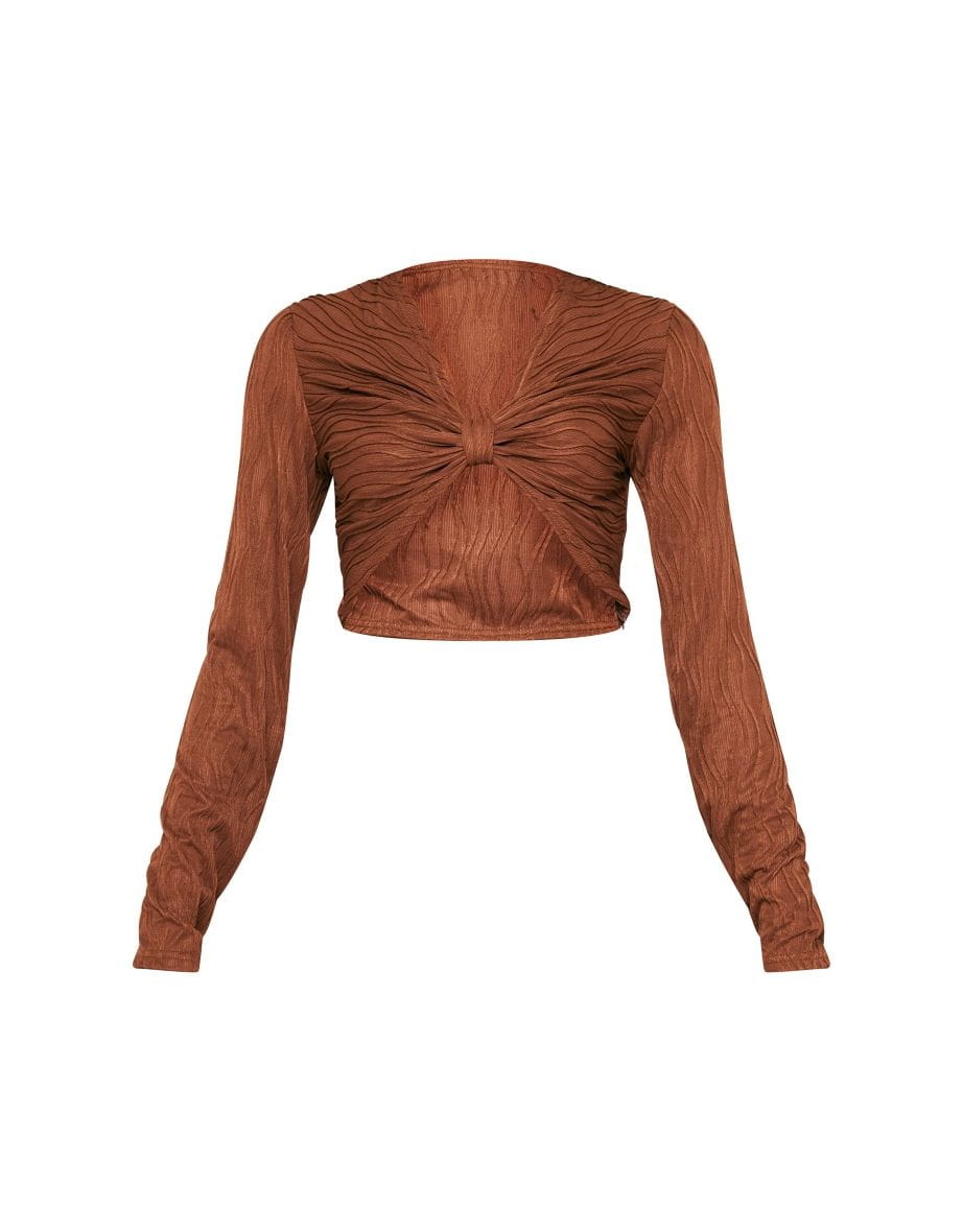 PRETTYLITTLETHING Brązowy top długie rękawy (38)