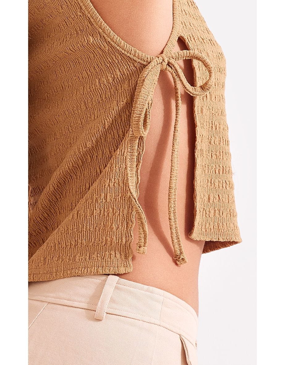 PRETTYLITTLETHING Brązowy top wiązania (36)