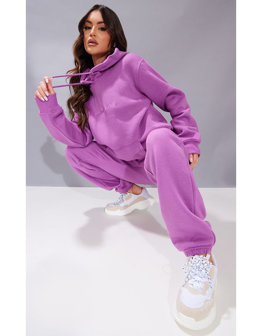 PRETTYLITTLETHING Fioletowa bluza haft (S)