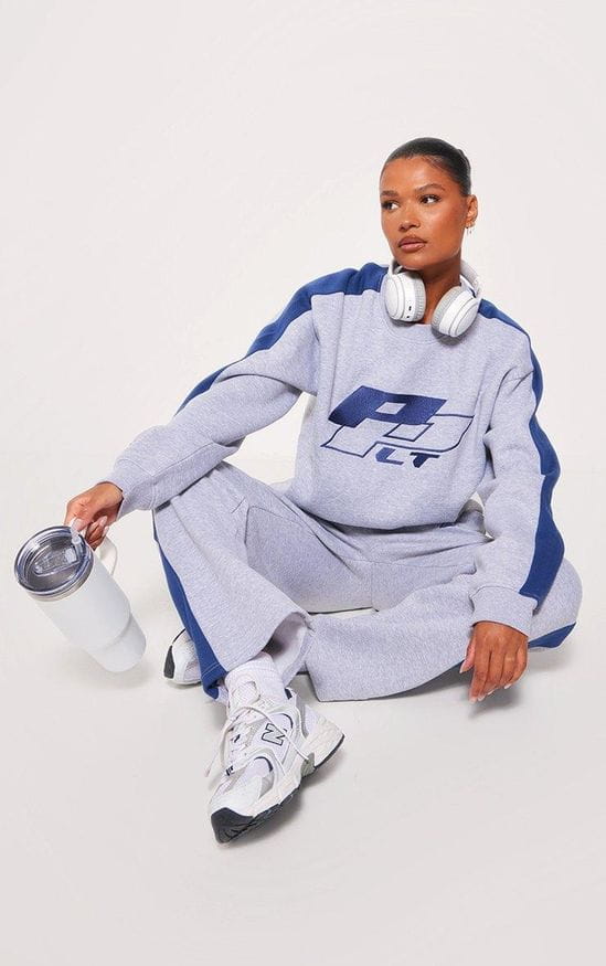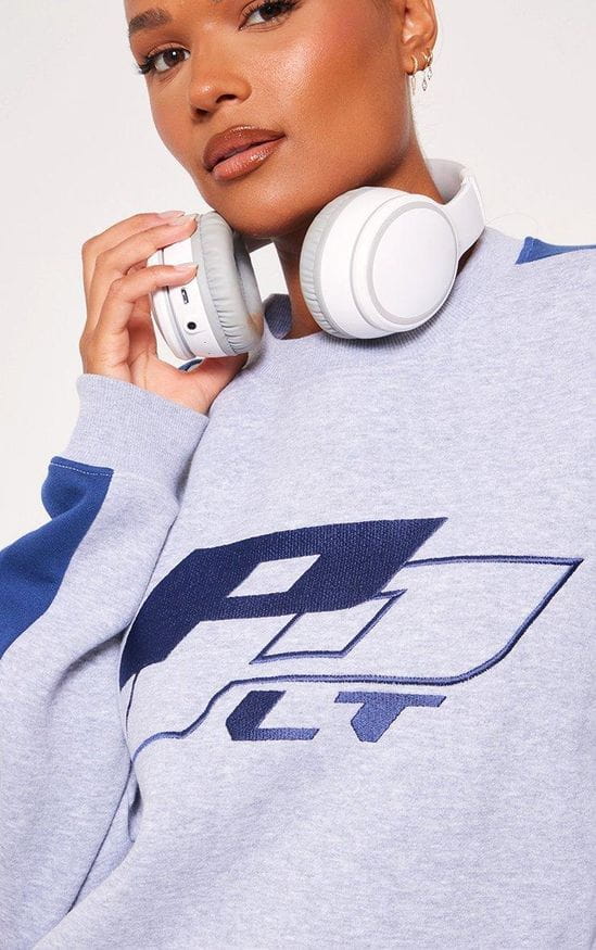PRETTYLITTLETHING Szara bluza oversize hafty (M)