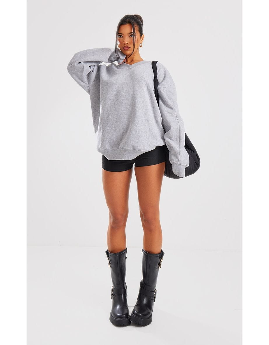 PRETTYLITTLETHING Szara bluza v neck melanż (M)