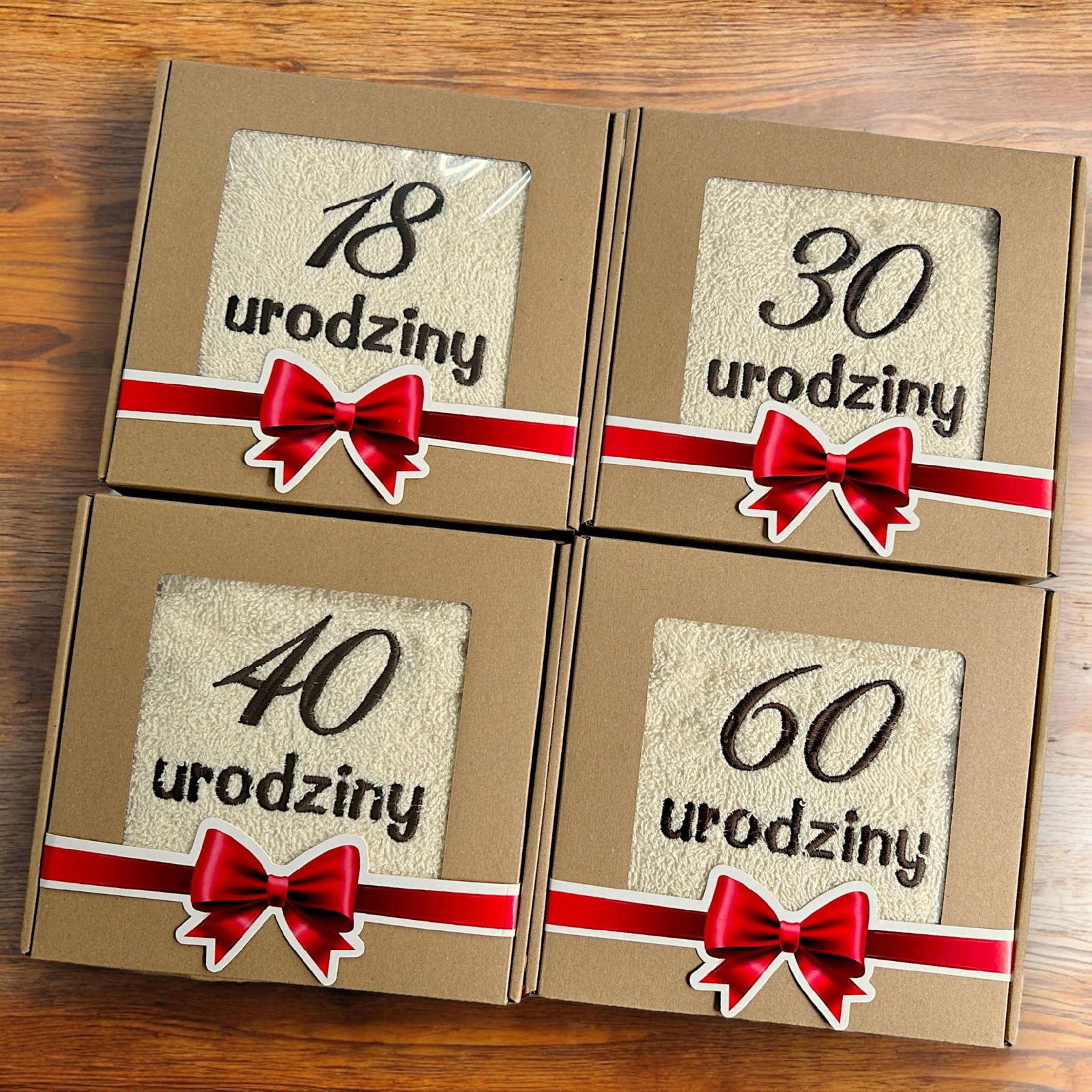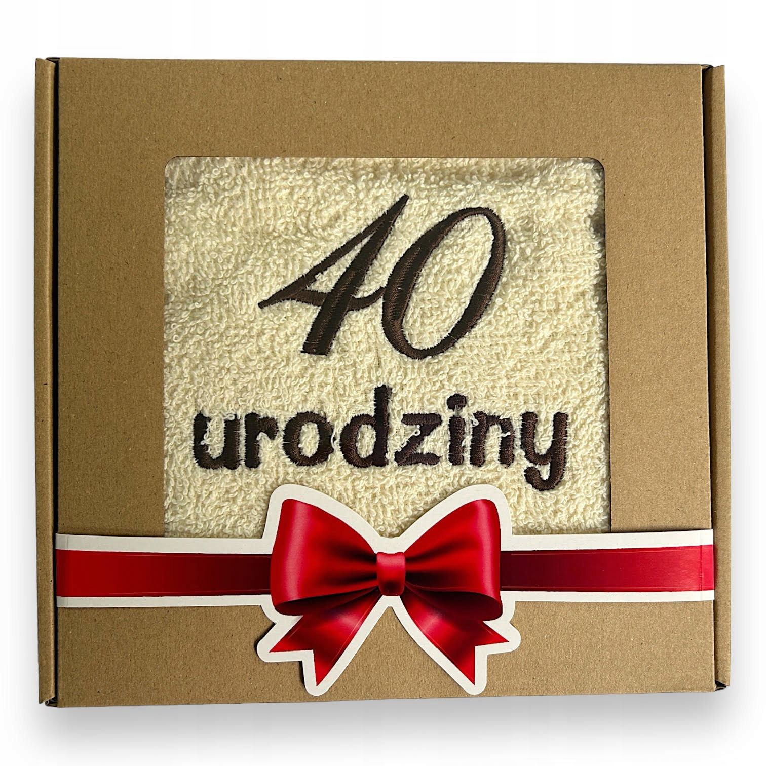 ręcznik o wymiarach 50x100cm z wyhaftowanym napisem "dana cyfra i napis urodziny"