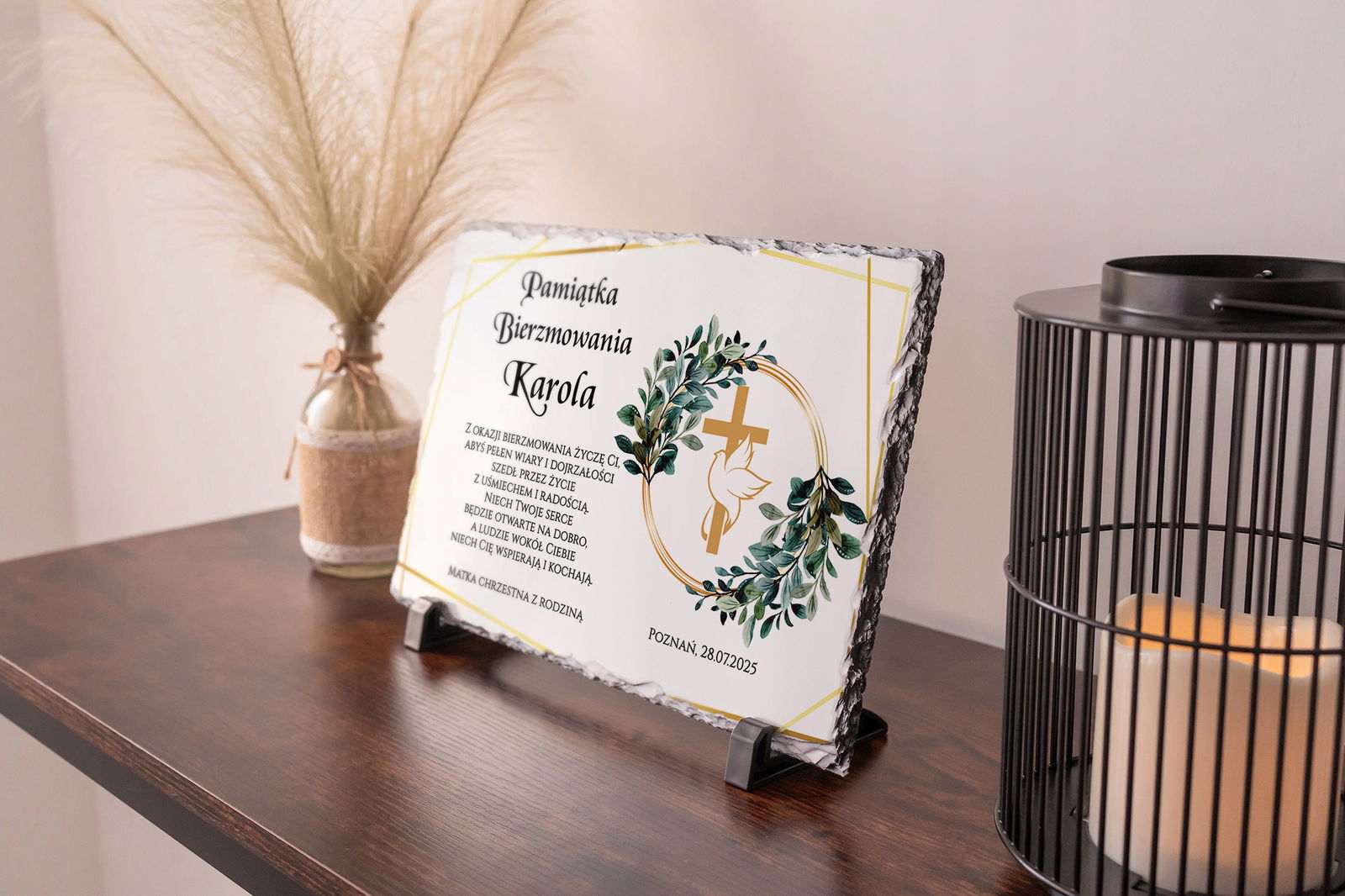 Elegancka pamiątka Bierzmowania wykonana z trwałego granitu, z wysokiej jakości nadrukiem i możliwością pełnej personalizacji. To niezwykły sposób, aby upamiętnić ten ważny sakrament i podarować bliskiej osobie coś, co pozostanie z nią na długie lata.