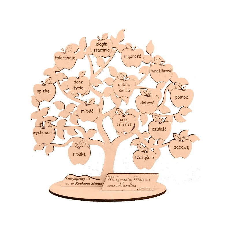 PREZENT NA DZIEŃ MAMY MATKI GRAWER DRZEWKO DREWNO