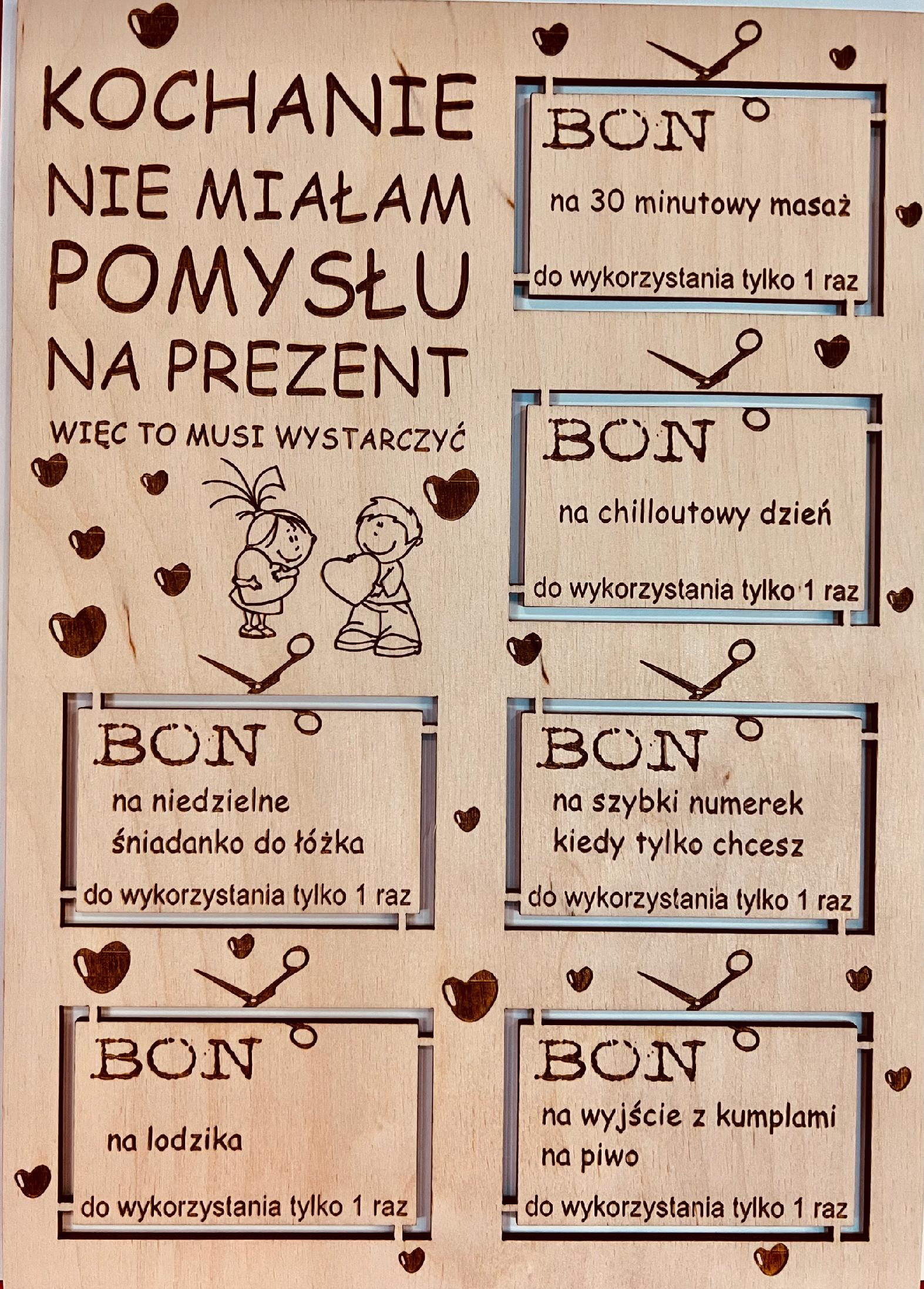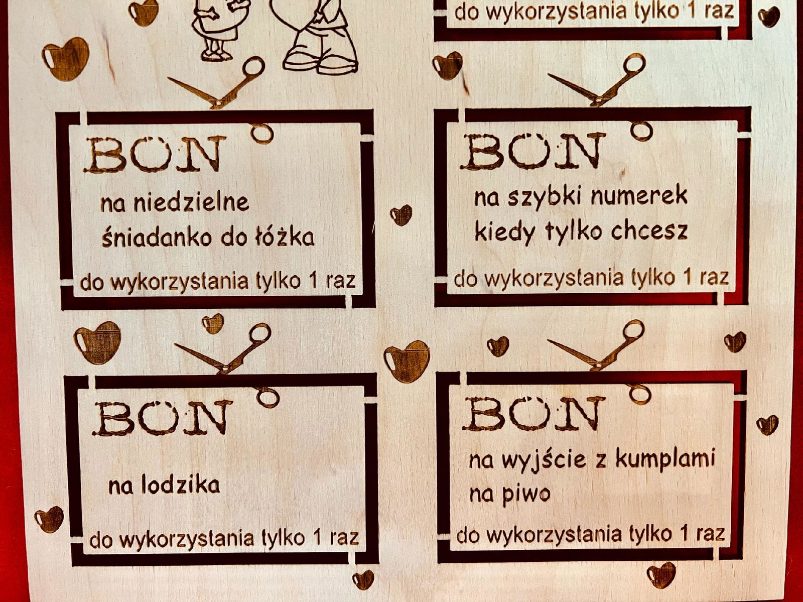 Grawerowana Tabliczka ze sklejki z bonami do wyłamania.