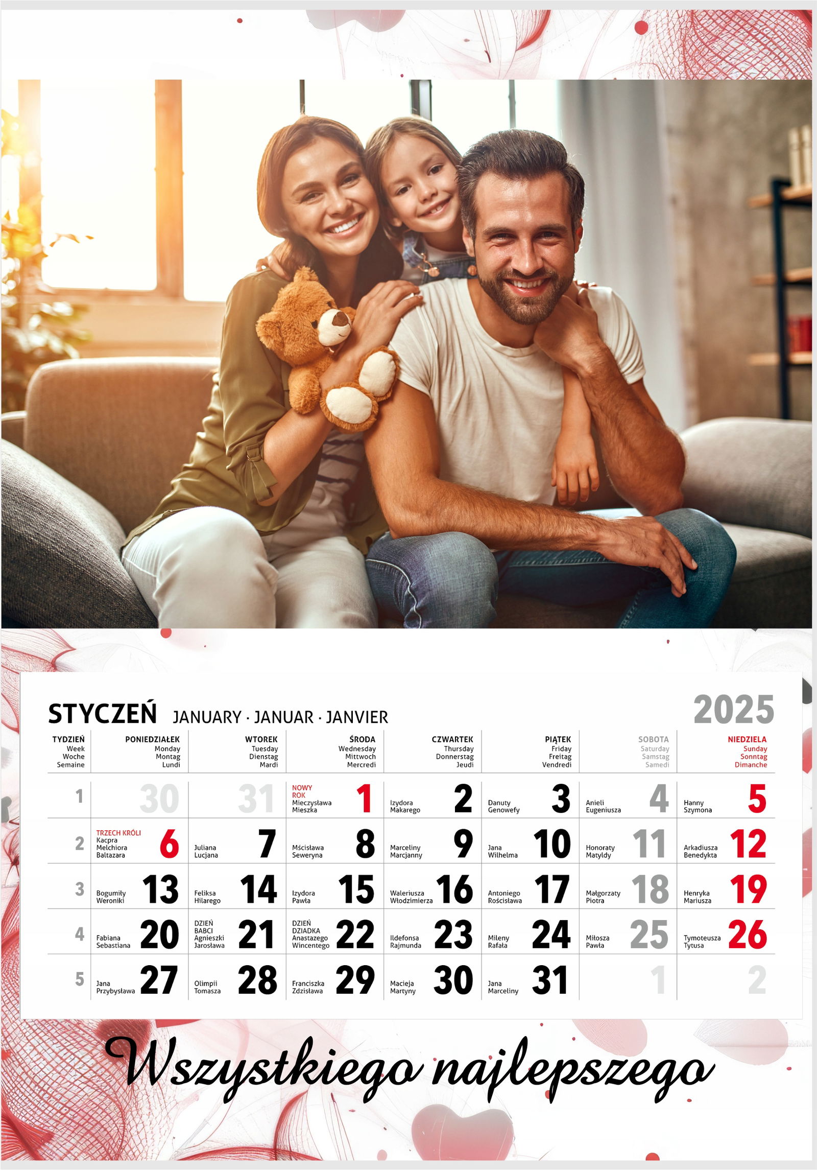 W przypadku otrzymania samego zdjęcia, domyślnie stosujemy tło z miniaturki i pozostawiamy kalendarz bez żadnych życzeń