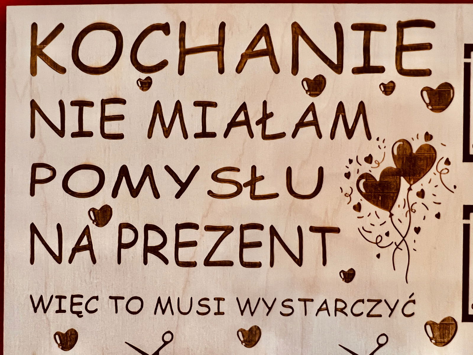 - Precyzyjne grawerowanie laserowe: Technologia laserowa pozwala na wykonanie bardzo precyzyjnych i detalicznych grawerów, co sprawia, że tekst oraz wzory na produkcie są niezwykle estetyczne, czytelne i długotrwałe. Wszystkie nasze produkty są wykonane z najwyższej jakości sklejki, a precyzyjne grawerowanie laserowe sprawia, że produkt jest nie tylko estetyczny, ale także trwały. Jakość wykonania jest dla nas priorytetem, dlatego możesz być pewien, że otrzymasz produkt na najwyższym poziomie.