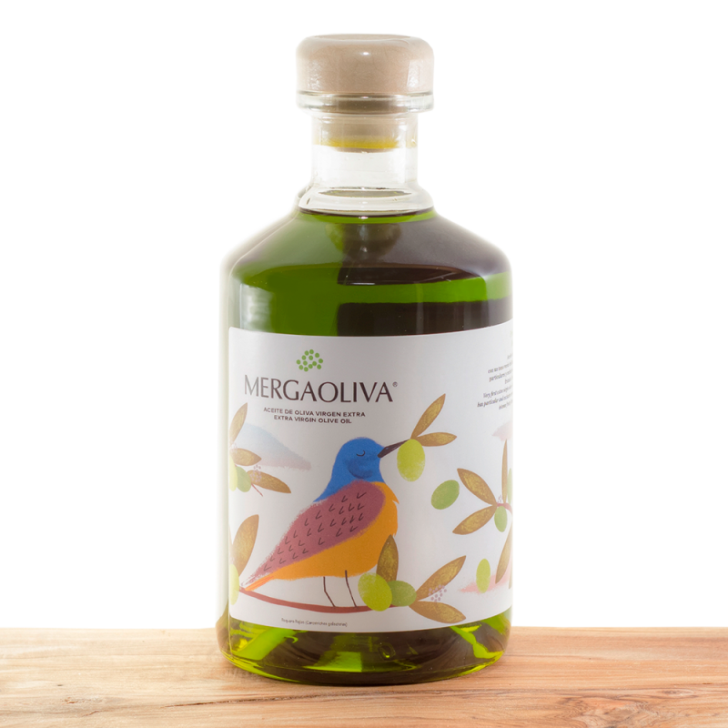 Jest to wczesna oliwa z oliwek o jasnozielonym odcieniu i bardzo wyjątkowych i ekskluzywnych niuansach sensorycznych, takich jak świeżość lub intensywna owocowość. Idealne do delektowania się na surowo. Wszystkie oliwy z oliwek Extra Virgin Mergaoliva pochodzą z soku z oliwek zebranych z własnych gajów oliwnych. Całość monitoringu i opieki prowadzona jest przez wykwalifikowany personel przeszkolony w zakresie ochrony środowiska. Główną podstawą dobrej oliwy z oliwek z pierwszego tłoczenia jest pielęgnacja pól uprawnych i drzewa oliwnego. Odmiana: PICUAL Opakowanie jest idealne do codziennego użytku w kuchni, ponieważ jest bardzo łatwy w obsłudze.