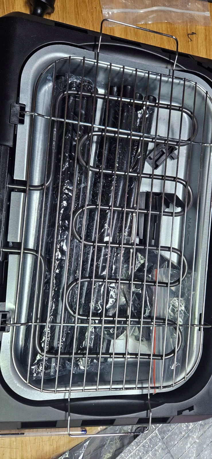 Dzięki dołączonemu stojakowi grill elektryczny może służyć zarówno jako model stołowy, jak i grill wolnostojący. Solidny stojak ma dodatkową półkę do przechowywania, na której możesz umieścić wszystkie przybory do grillowania, sztućce i marynaty. Grill posiada dwa ruszty grillowe na różnych wysokościach, dzięki czemu można grillować nie tylko mięso, ale także ryby i warzywa. Użyj górnego rusztu do grillowania, aby pozwolić odpocząć większemu kawałkowi mięsa, aby pozostało ciepłe i soczyste, podczas gdy szybko grillujesz warzywa na dolnym ruszcie, dzięki czemu możesz podawać je wszystkie w tym samym czasie.