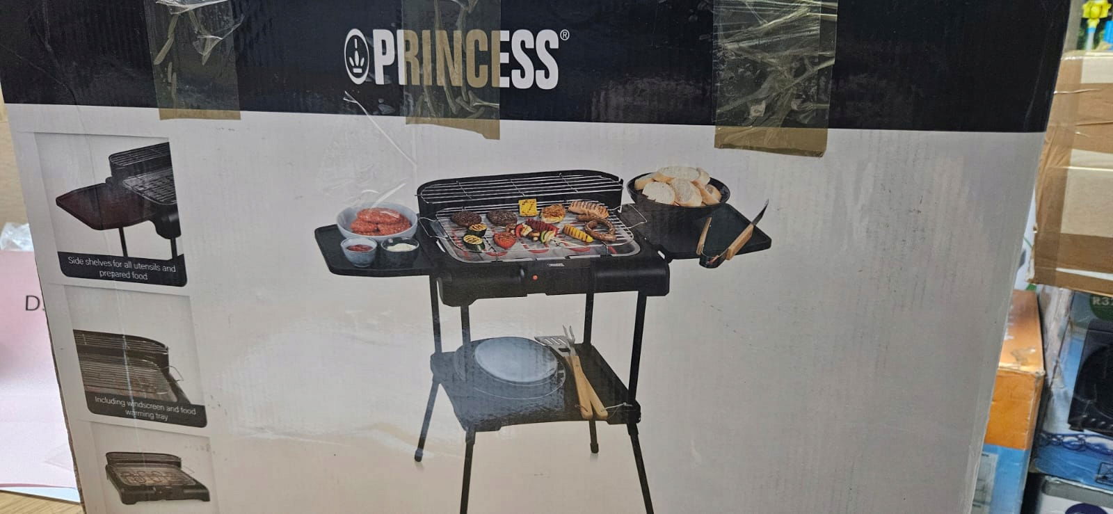 Princess 01.112250.01.001 Elektryczny grill stojący z bocznymi półkami, 112250, czarny, tworzywo sztuczne, 1 ładowanie, wielokolorowy