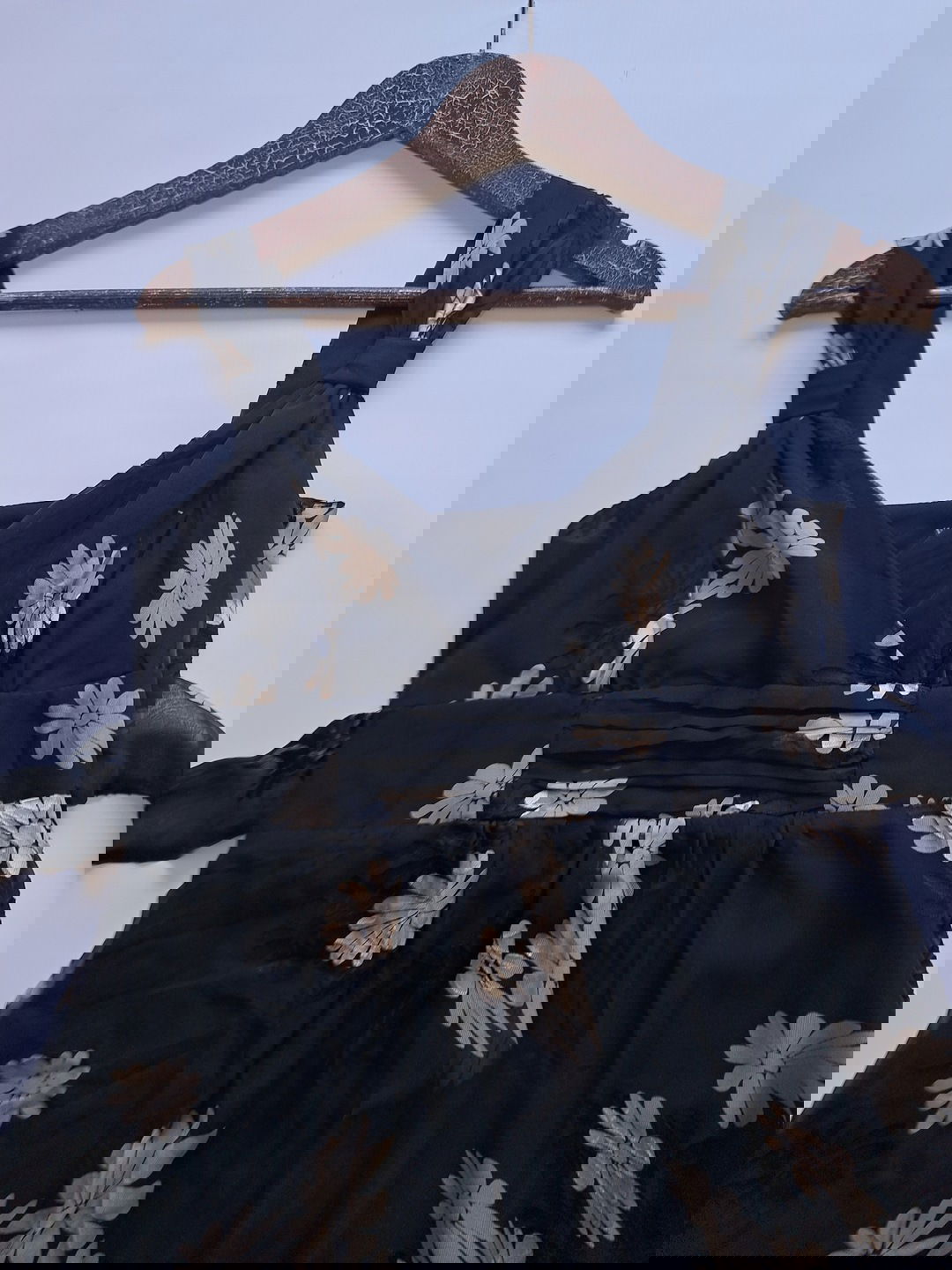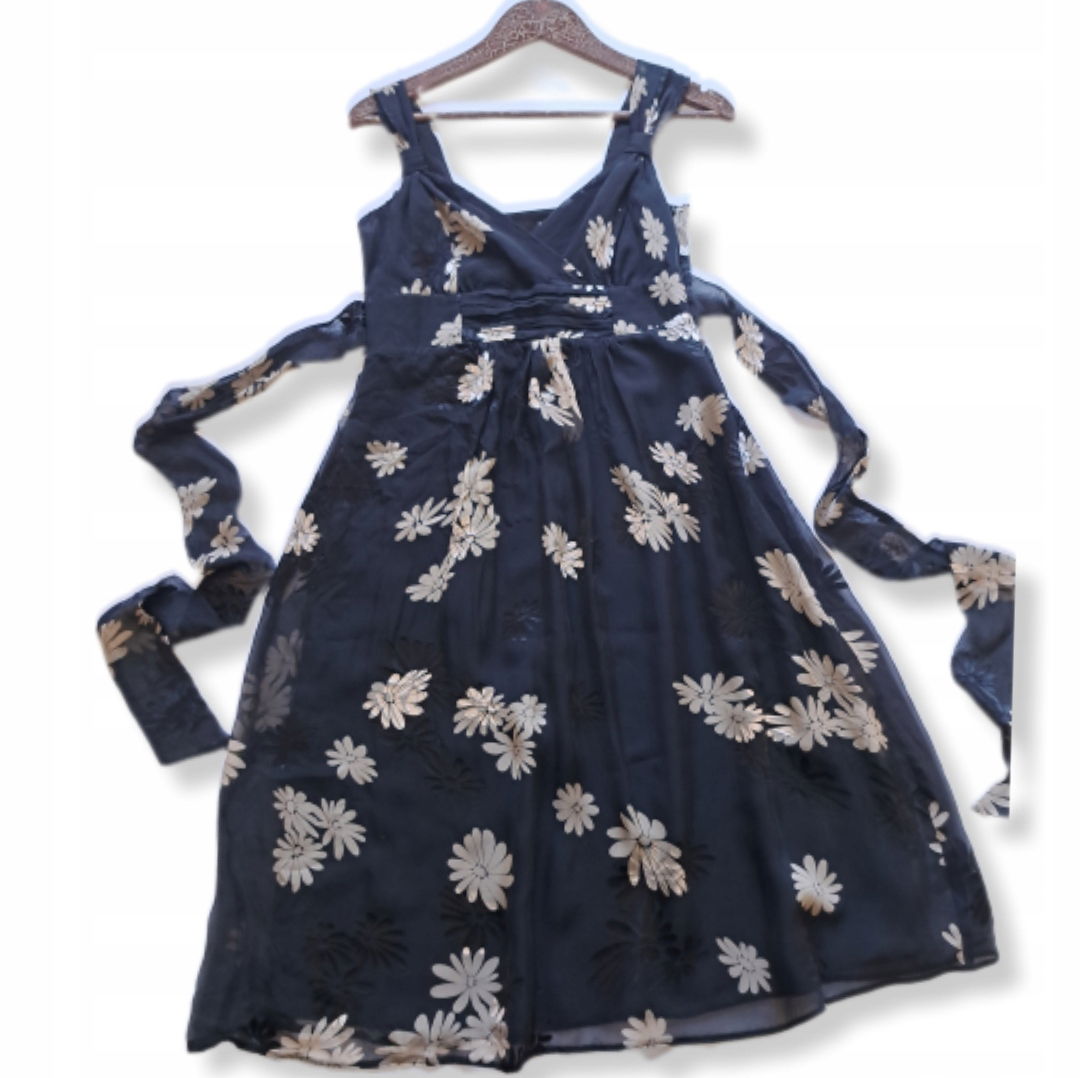 PRINCIPLES jedwabna czarna sukienka mgiełka kwiatki 36/38