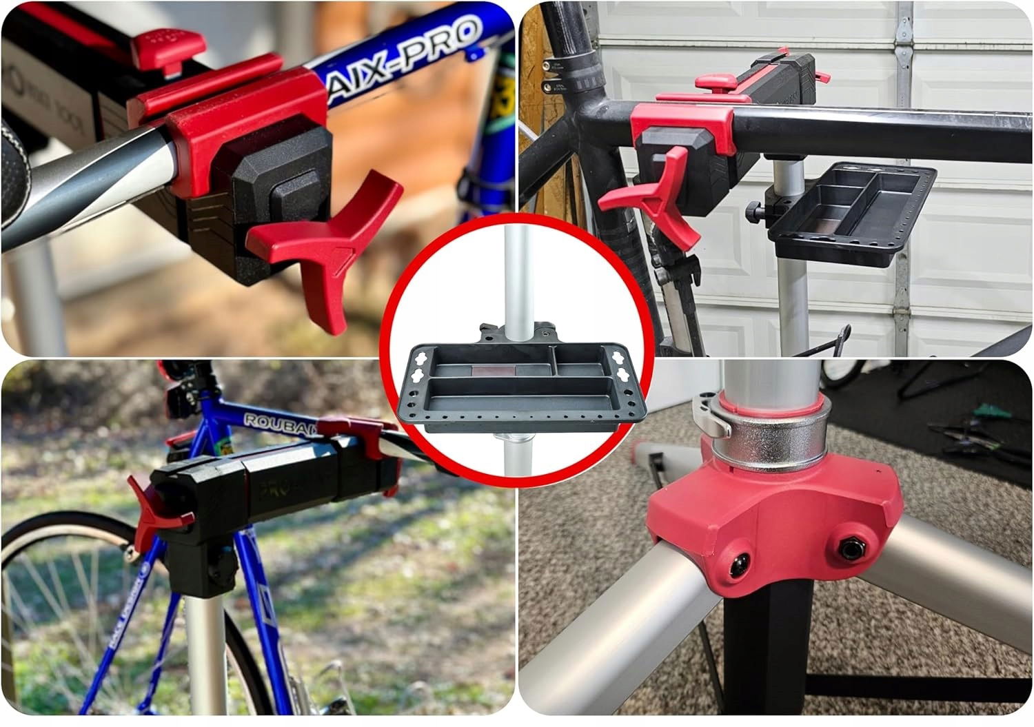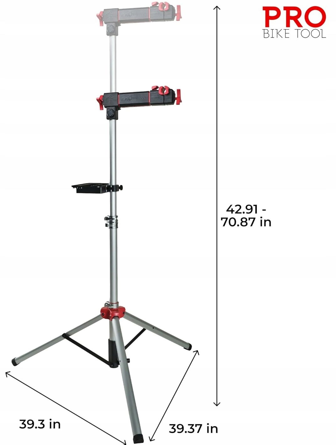 PRO BIKE TOOL Stojak naprawczy rowerowy, srebrny, czerwony, wszechstronny, konserwacyjny stojak rowerowy do konserwacji, solidny stojak do naprawy roweru, przenośny, z poręcznym stojakiem na płyty �♂️?️