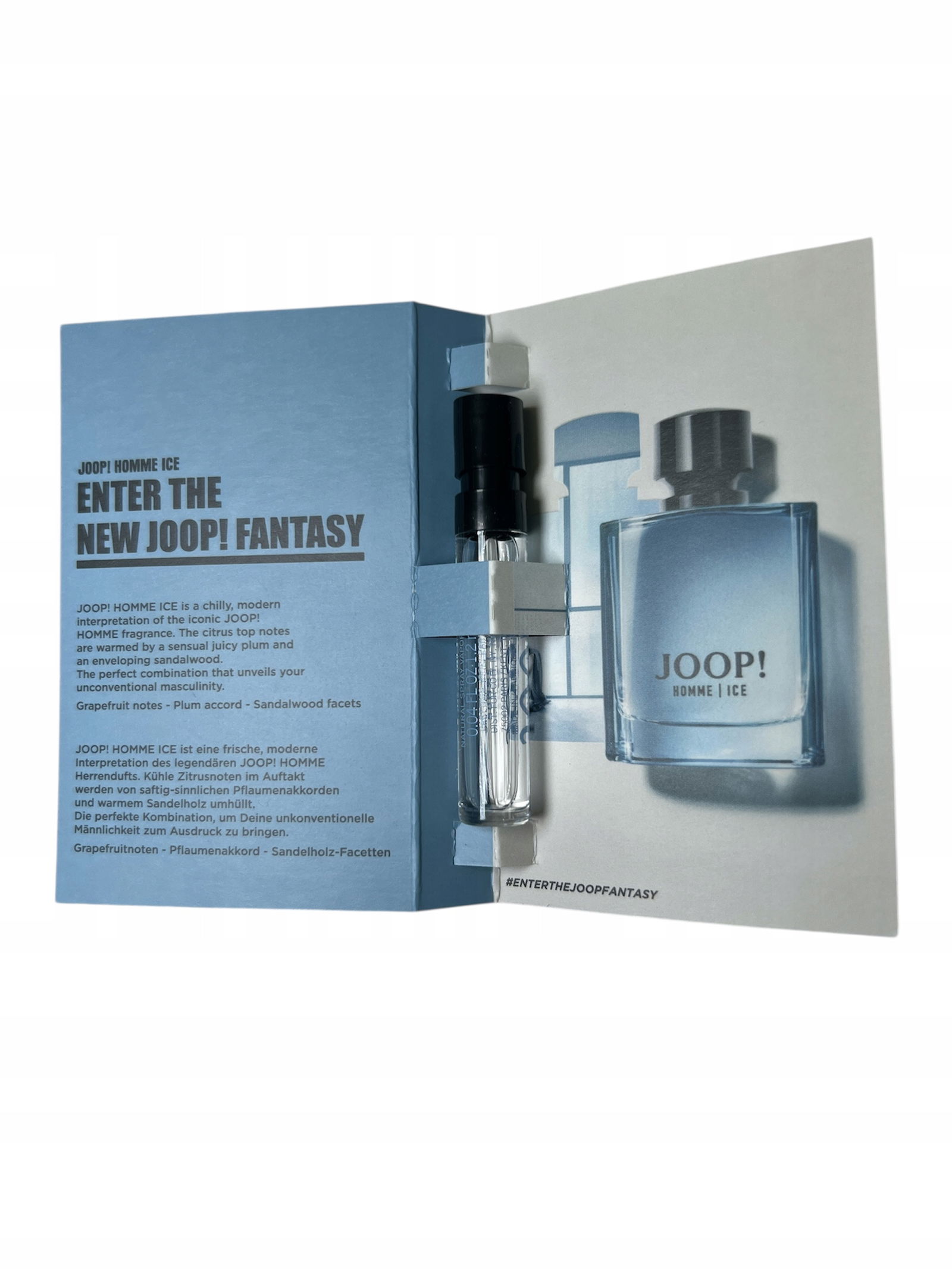 Joop! Homme Ice EDT 1,2 ml – próbka odświeżającego, męskiego zapachu cytrusowo-drzewnego. Idealny na lato i test przed zakupem pełnego flakonu. Oryginalny mini-spray (EAN 3614229666489).