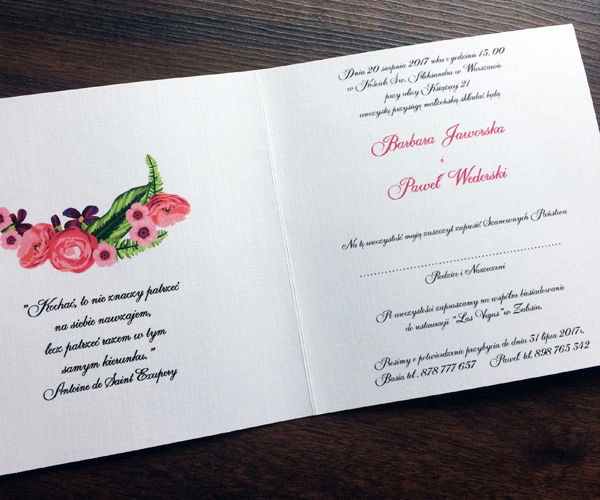 - zaproszenie po złożeniu: ok. 15,0 cm x 14,5 cm