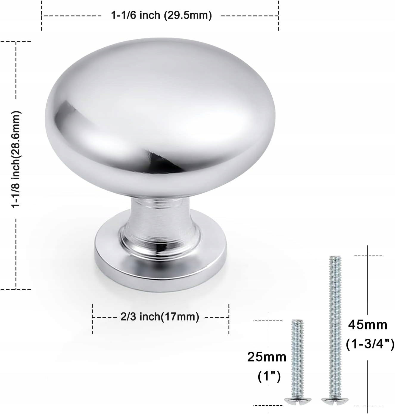 Trwałe gałki do szafy: nasze polerowane, chromowane gałki do szafek są wykonane ze stopu cynku, są wytrzymałe, odporne na korozję i rdzę oraz mają długą żywotność. Wysokość: 30 mm, średnica: 30 mm.