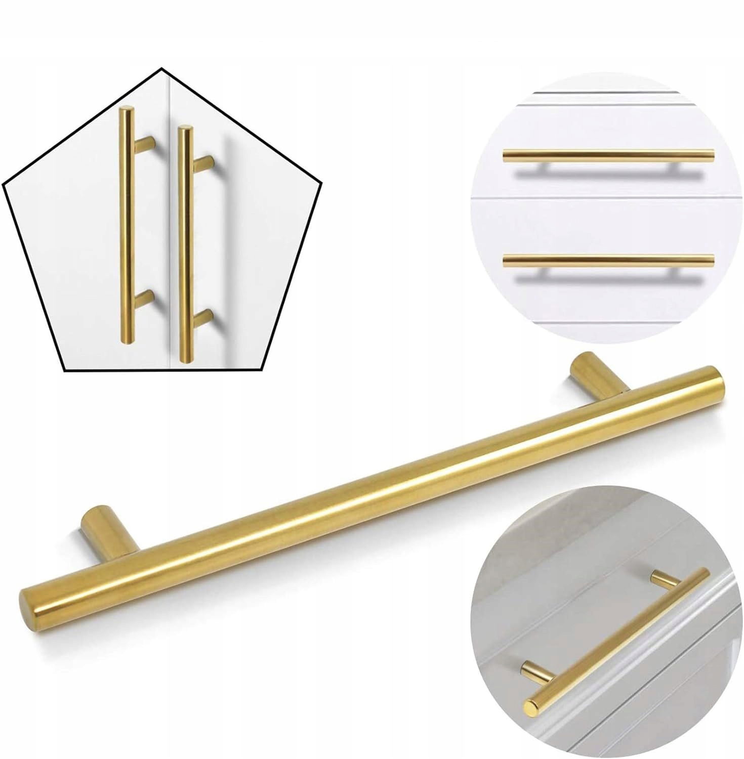 Uchwyty do szafek kuchennych Probrico w kolorze złotym to eleganckie i nowoczesne uchwyty do szuflad i szafek, wykonane z wysokiej jakości stali nierdzewnej. Dzięki solidnej konstrukcji i luksusowemu wyglądowi, te uchwyty są idealnym wyborem do odświeżenia wyglądu Twoich mebli.