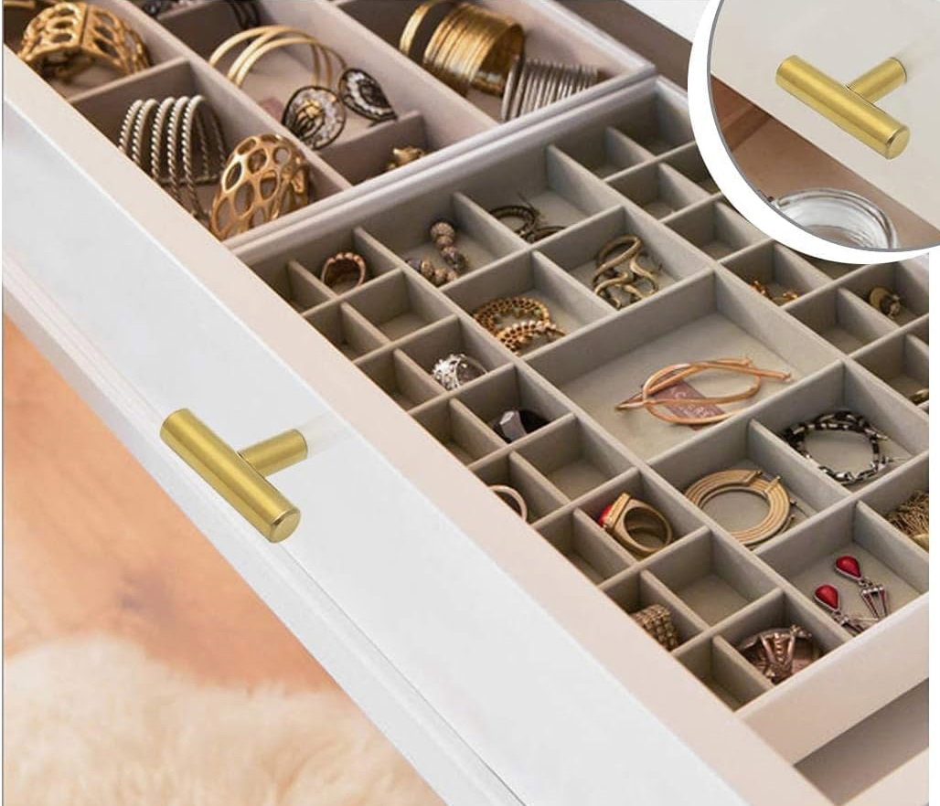Gałki meblowe Probrico w kształcie litery T to eleganckie i nowoczesne uchwyty do szuflad i komód, wykonane z wysokiej jakości stali nierdzewnej w kolorze złotym. Dzięki solidnej konstrukcji i łatwej instalacji, te gałki są idealnym wyborem do odświeżenia wyglądu Twoich mebli.