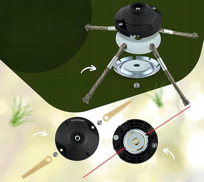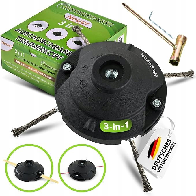 Jakość premium: Głowica podkaszarki NIEDERGRASER została zaprojektowana z myślą o wydajności i trwałości. Jest idealna do pracy w trudnych warunkach, takich jak koszenie trawy, usuwanie chwastów czy przycinanie żywopłotów. Umożliwia precyzyjne koszenie i kształtowanie trawnika, zapewniając profesjonalny wygląd ogrodu.