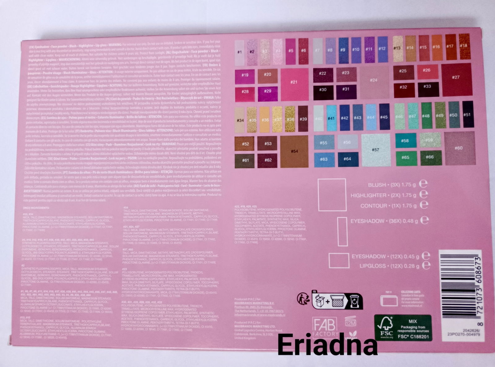- Zawiera m.in. cień do powiek, błyszczyk i róż