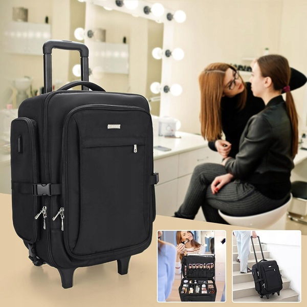 - Ten plecak kosmetyczny na wózek może być używany podczas podróży i może pomieścić więcej kosmetyków.