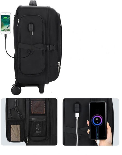- Lewa kieszeń na zamek błyskawiczny posiada interfejs USB, a dolną komorę można wyposażyć w wewnętrzny mobilny zasilacz.