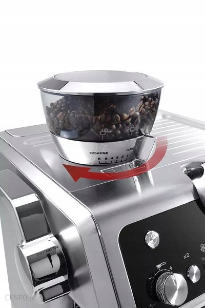 - Ekspres posiada stalowy młynek wyposażony w dwa czujniki, które zapewniają zawsze stałą i optymalną dawkę kawy dla odpowiednich przepisów.