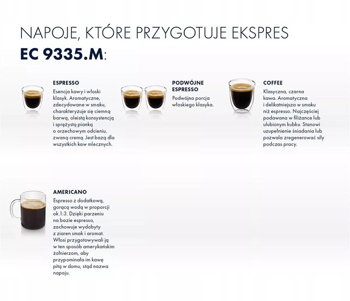 - La Specialista pozwala na przygotowanie Espresso, podwójnego Espresso, kawy czarnej oraz Americano.