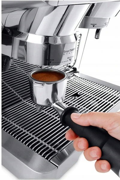 - Smart Tamping System pozwala na ubijanie zmielonej kawy z idealnym naciskiem za każdym razem - wystarczy nacisnąć dźwignię.