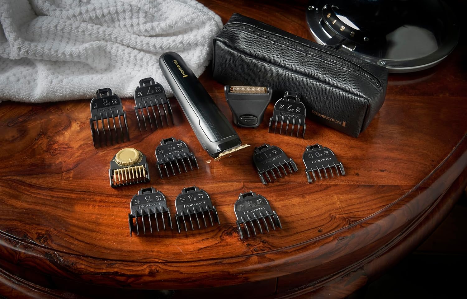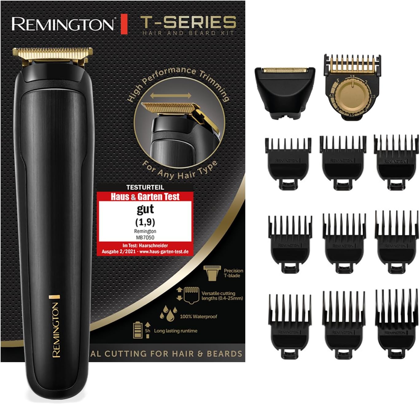 Trymer do włosów Remington MB7050 Profesjonalny [funkcja silnika turbo, akumulator litowy, 4 godziny pracy, zasilanie sieciowe i bateryjne] Seria T 2 w 1: Trymer do brody i włosów (9 nakładek grzebieniowych 1,5-25 mm)