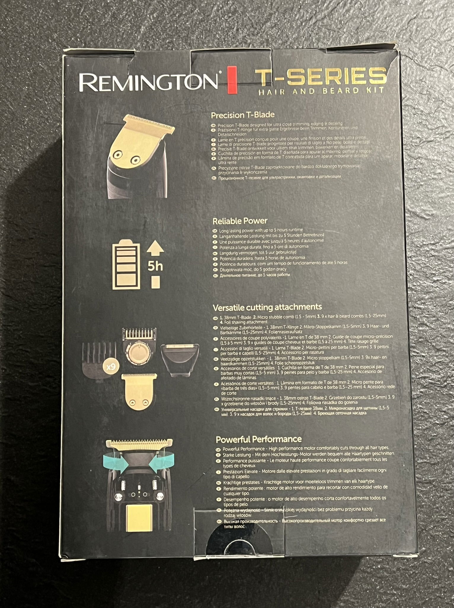 - Wysokiej jakości ostrze T o długości 38 mm do włosów i brody, do 5 godzin pracy