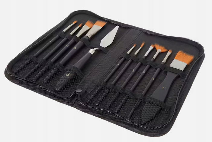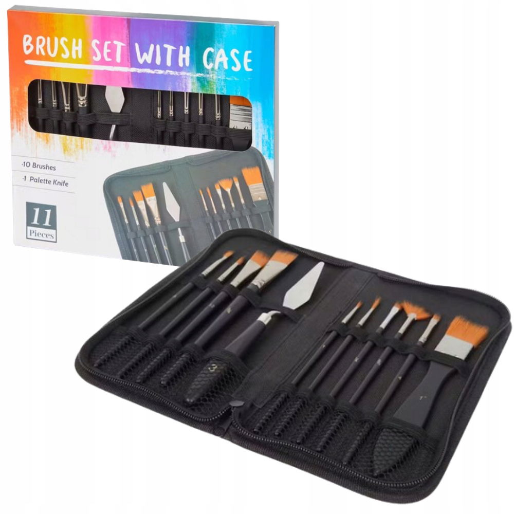 Profesjonalny Zestaw pędzli w ETUI zawiera 10 pędzli 1 szpachelka malarska