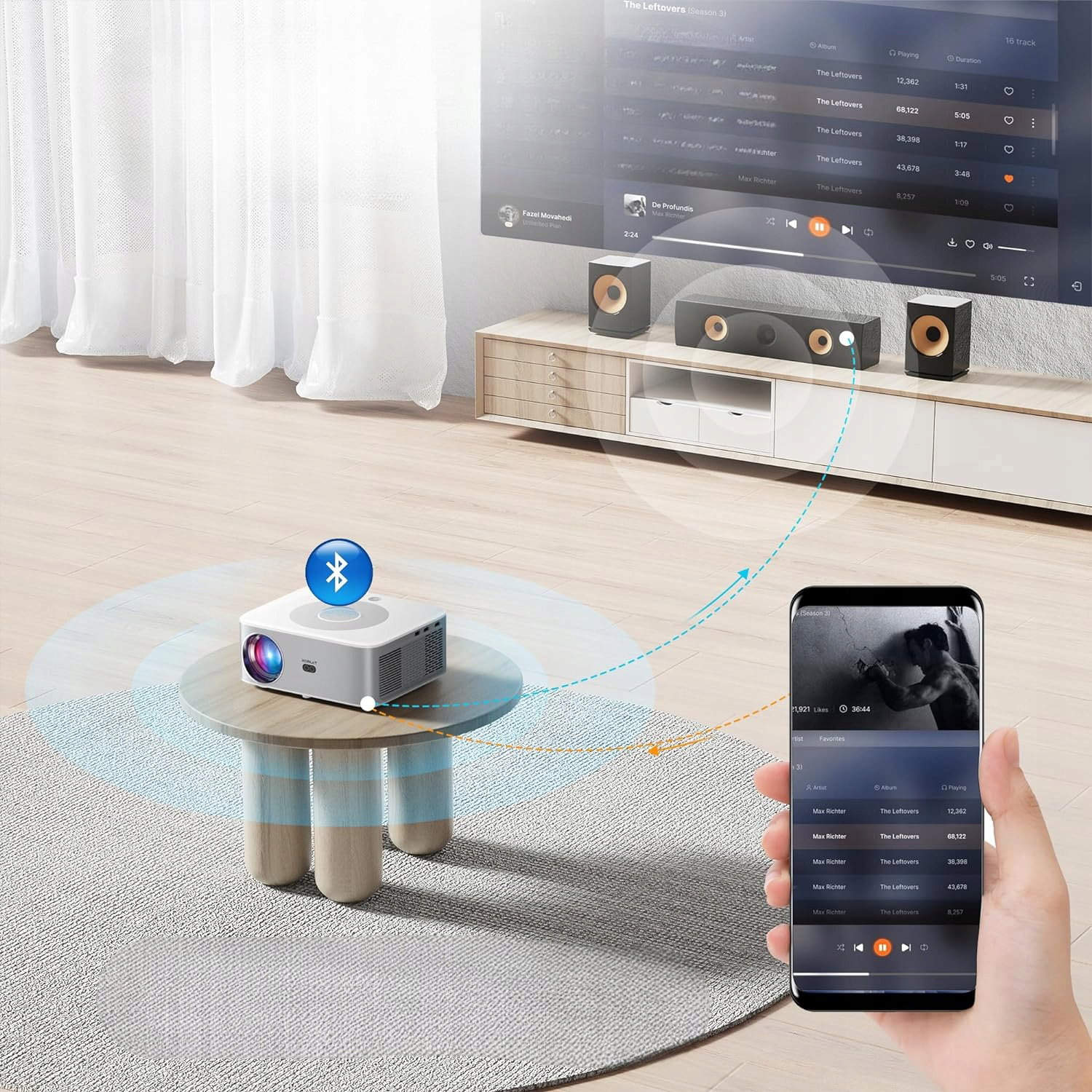 Automatyczne ustawianie ostrości projektora/korekta trapezowa: Projektor Full HD 1080P Wi-Fi z Bluetoothem, obsługą 4K z przyciskiem dotykowym, 18000 lumenów, 50% zoomu, Projektor wideo kina domowego kompatybilny z Fire Stick,