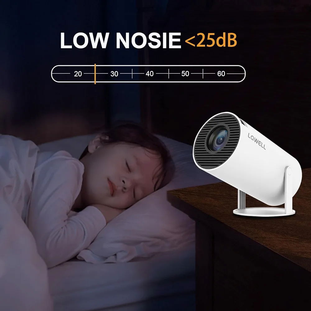 LQWELL HY300 PRO Mini rzutnik, obsługa 4K 1080p, z systemem Android 11, WiFi 6, Bluetooth 5.0, obsługuje Airplay i Miracast, przenośny projektor domowy i zewnętrzny, do systemów Android/iPhone/PC/Mac