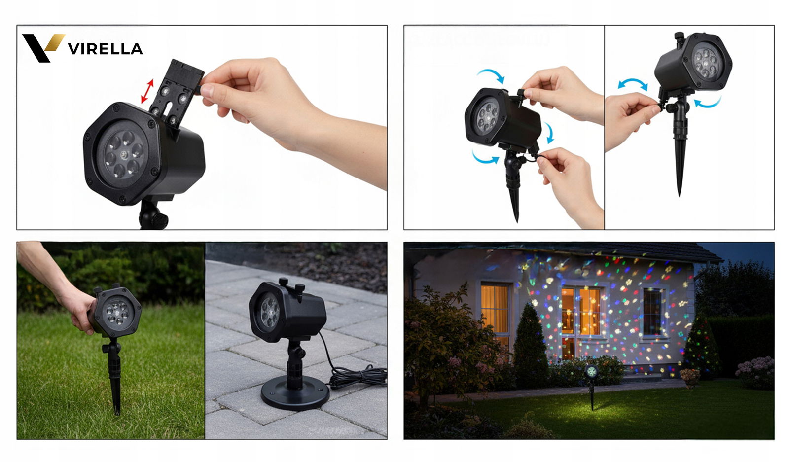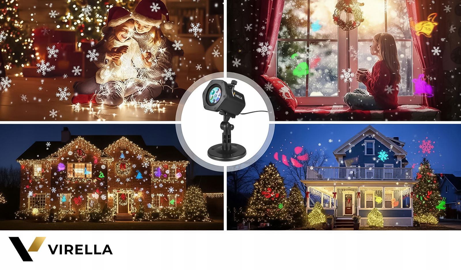 Zamień elewację, ogród lub salon w zimową bajkę bez kabli lampek i bez skomplikowanego sterowania. Projektor VIRELLA oferuje aż 48 wzorów (nie 12–24 jak typowe modele), długi kabel 5 m i pełną odporność pogodową IP65. Wybierasz lepszą jakość, większe możliwości i niższe zużycie prądu — efekt WOW gwarantowany.