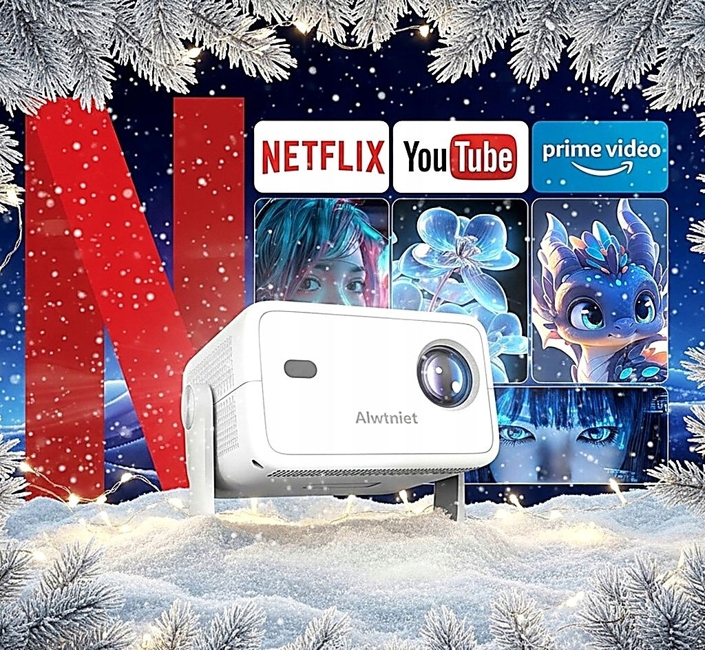 ⭐ PROJEKTOR RZUTNIK ALWTNIET L018 1080p 650ANSI BIAŁY FULL HD ANDROID 11 WIFI ⭐