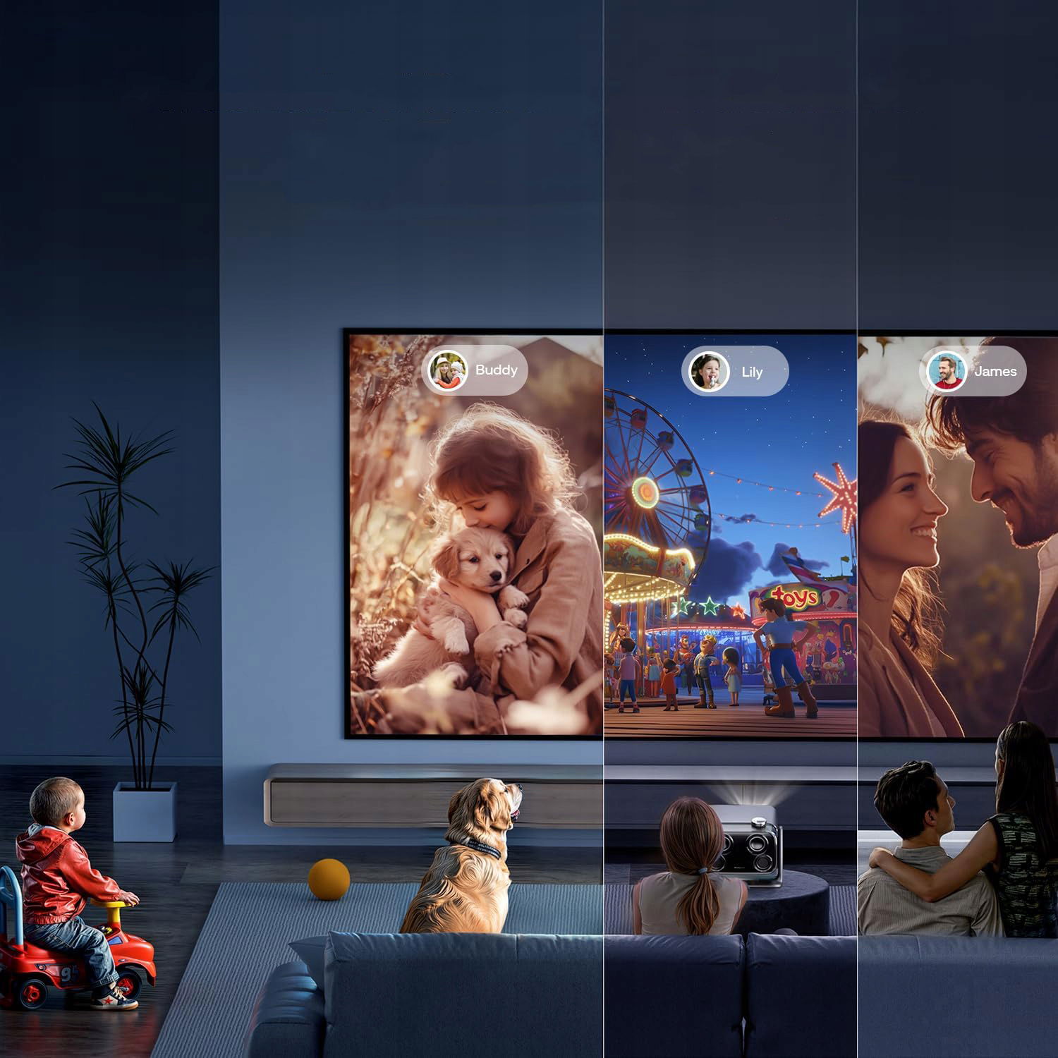 Dzięki 2 GB pamięci RAM oraz 16 GB pamięci wewnętrznej projektor działa szybko i responsywnie. Aplikacje uruchamiają się płynnie, a przełączanie treści odbywa się bez opóźnień, zapewniając komfortowe i nieprzerwane korzystanie z multimediów.