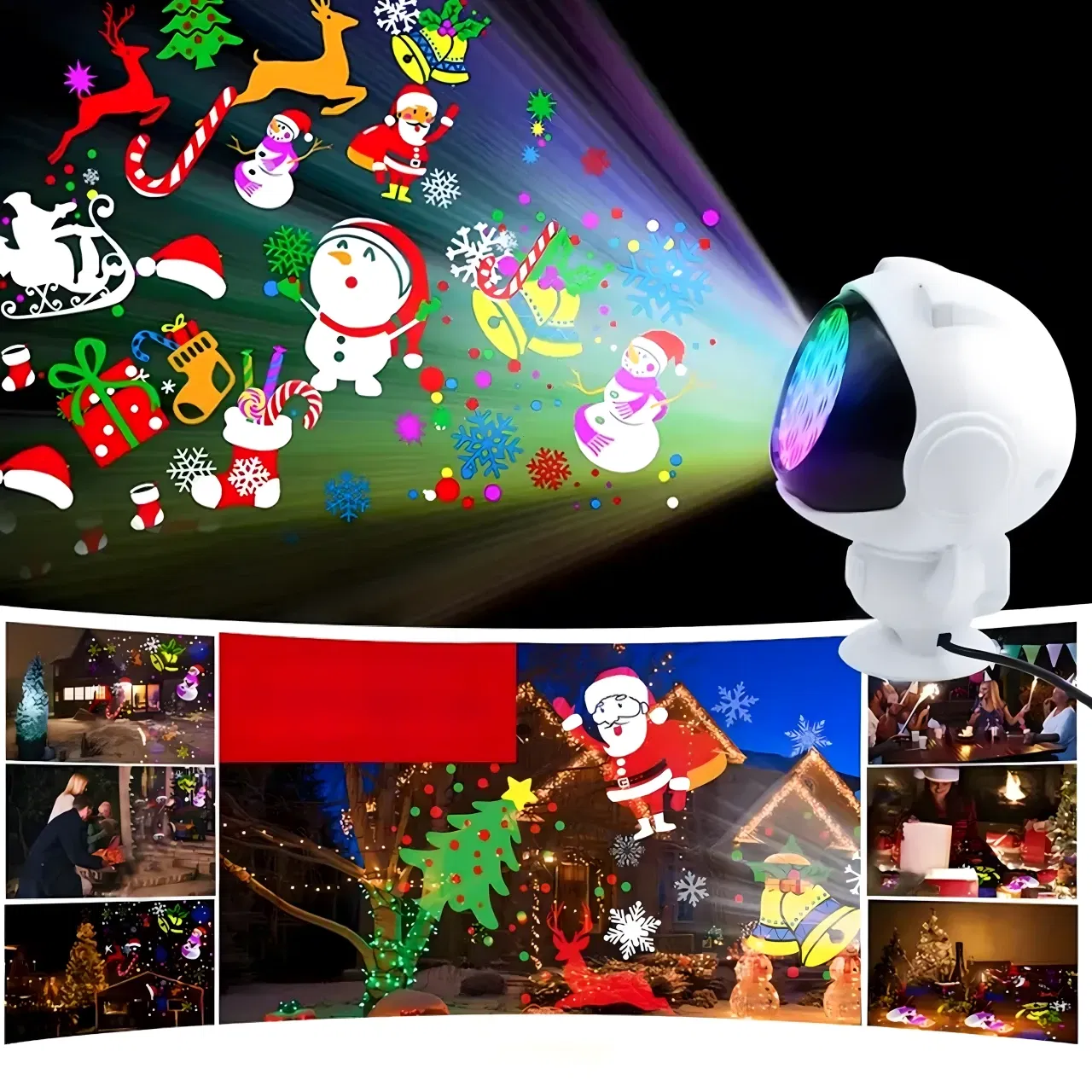 Projektor gwiazd w kształcie astronauty to wyjątkowe połączenie futurystycznego designu i magicznych świątecznych wzorów. Dzięki aż 16 dynamicznym motywom (płatki śniegu, bałwanki, renifery, Mikołaj i wiele innych) stworzy niepowtarzalny klimat w Twoim domu. Może pełnić funkcję dekoracji świątecznej, efektownej lampki nocnej lub oryginalnego prezentu.