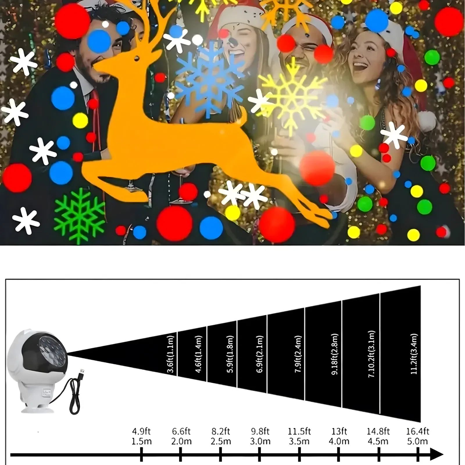 Tak, projektor wyświetla projekcję w ruchu z motywami świątecznymi renifer, śnieżynki, prezenty, bałwanki, sanie itp.