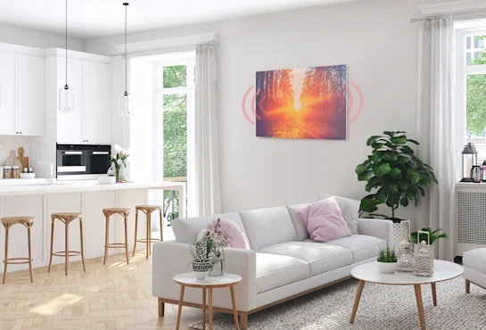 Panel grzewczy na podczerwień Wonderwall Air Art Infinite marki Klarstein rewolucjonizuje ogrzewanie dzięki nowoczesnej technologii. Panel grzewczy jest bardzo płaski – tak jak obraz – dlatego można go zawiesić bezpośrednio na ścianie, skąd będzie promieniował przyjemnym ciepłem. Dzięki technologii IR ComfortHeat grzejnik o mocy 580 W wykorzystuje zasadę ciepła słonecznego: zamiast powoli ogrzewać powietrze, emituje przyjemne promieniowanie podczerwone, które bezpośrednio ogrzewa ludzi i przedmioty na powierzchni około 11 m². Grzejnik elektryczny jest przy tym niezwykle energooszczędny: całe 98% pobranej energii jest zamieniane na promienie cieplne. A ponieważ Wonderwall emituje tylko promieniowanie cieplne, nie wzbija kurzu ani nie generuje hałasu – to czyni go idealnym wyborem dla alergików i do użytkowania w miejscach wrażliwych na hałas, takich jak biura czy sypialnie. Dzięki bezramkowej, designerskiej powierzchni z nadrukiem graficznym jest nie tylko źródłem ciepła, ale także przyciąga wzrok w każdym pomieszczeniu.