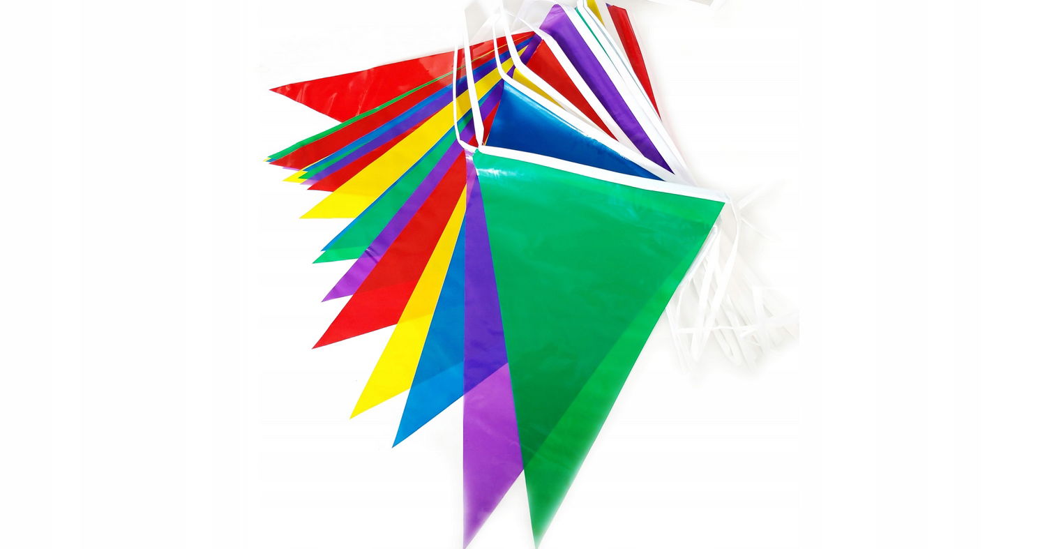 PROPORCZYKI FLAGA GIRLANDA 20 SZT FLAGI TRÓJKĄTY URODZINOWE NA IMPREZĘ 10M