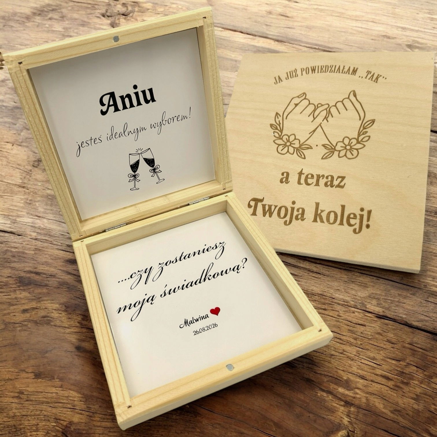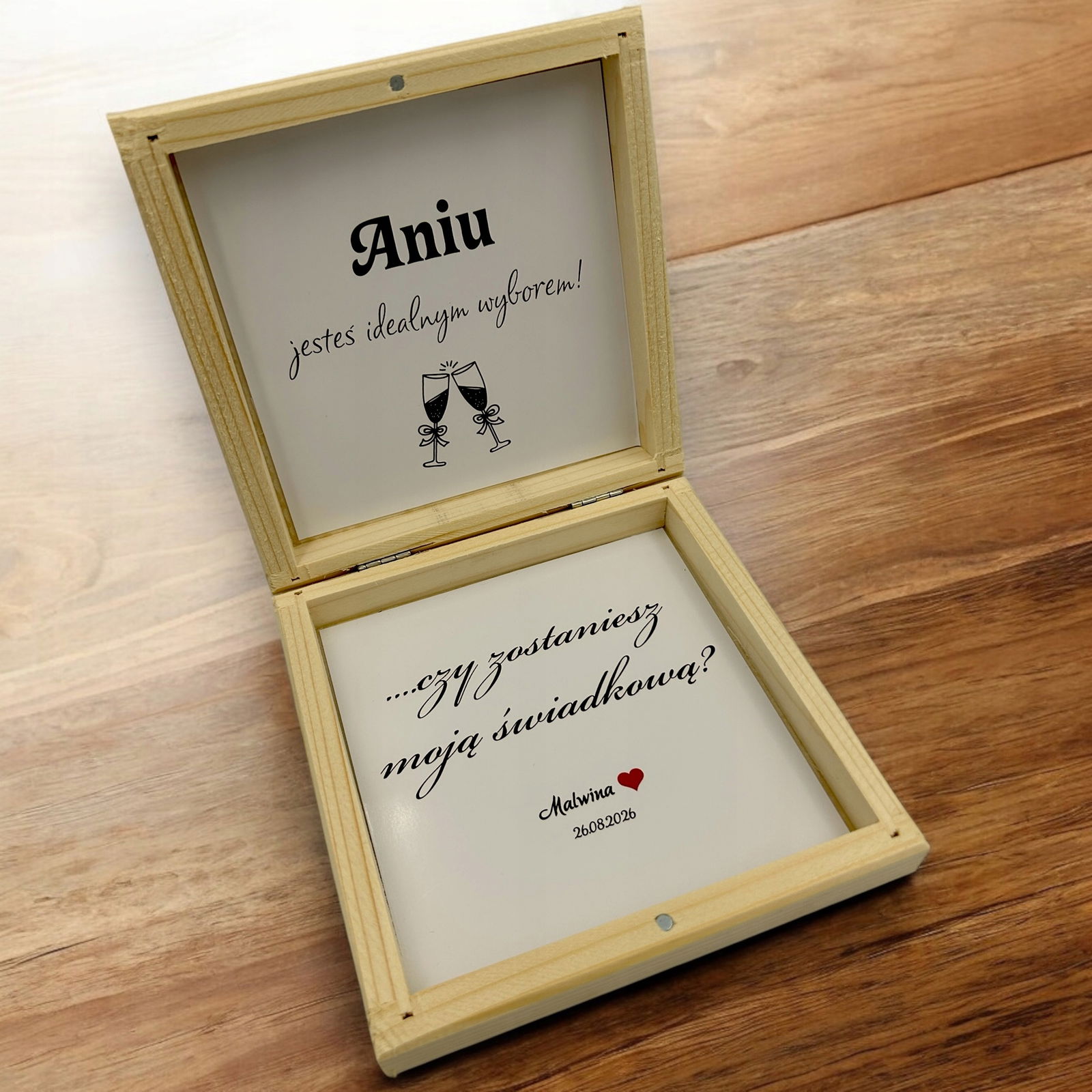 Prośba o Świadkowanie w Drewnianym Pudełku Zaproszenie Dla świadkowej w pudełku z Grawerem - Czy zostaniesz moim świadkiem.