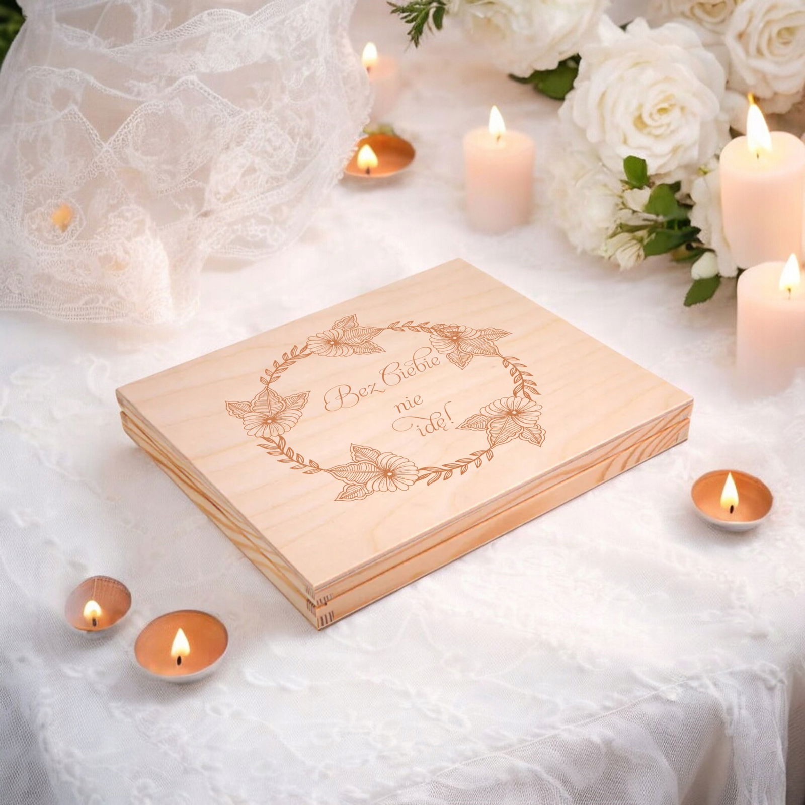 Prośba o Świadkowanie w Drewnianym Pudełku Zaproszenie Dla Świadkowej W Pudełku z Grawerem - Bez Ciebie Nie Idę.