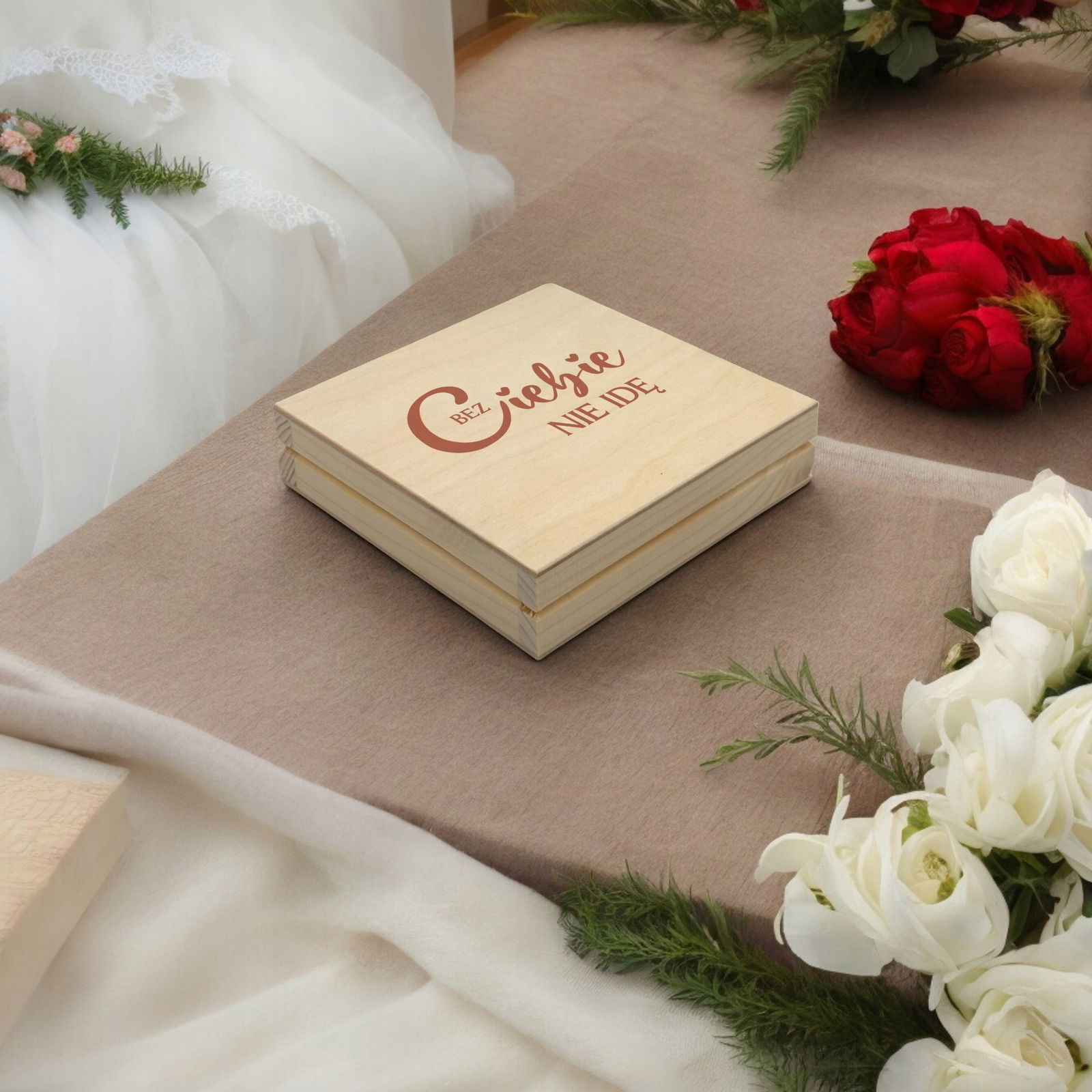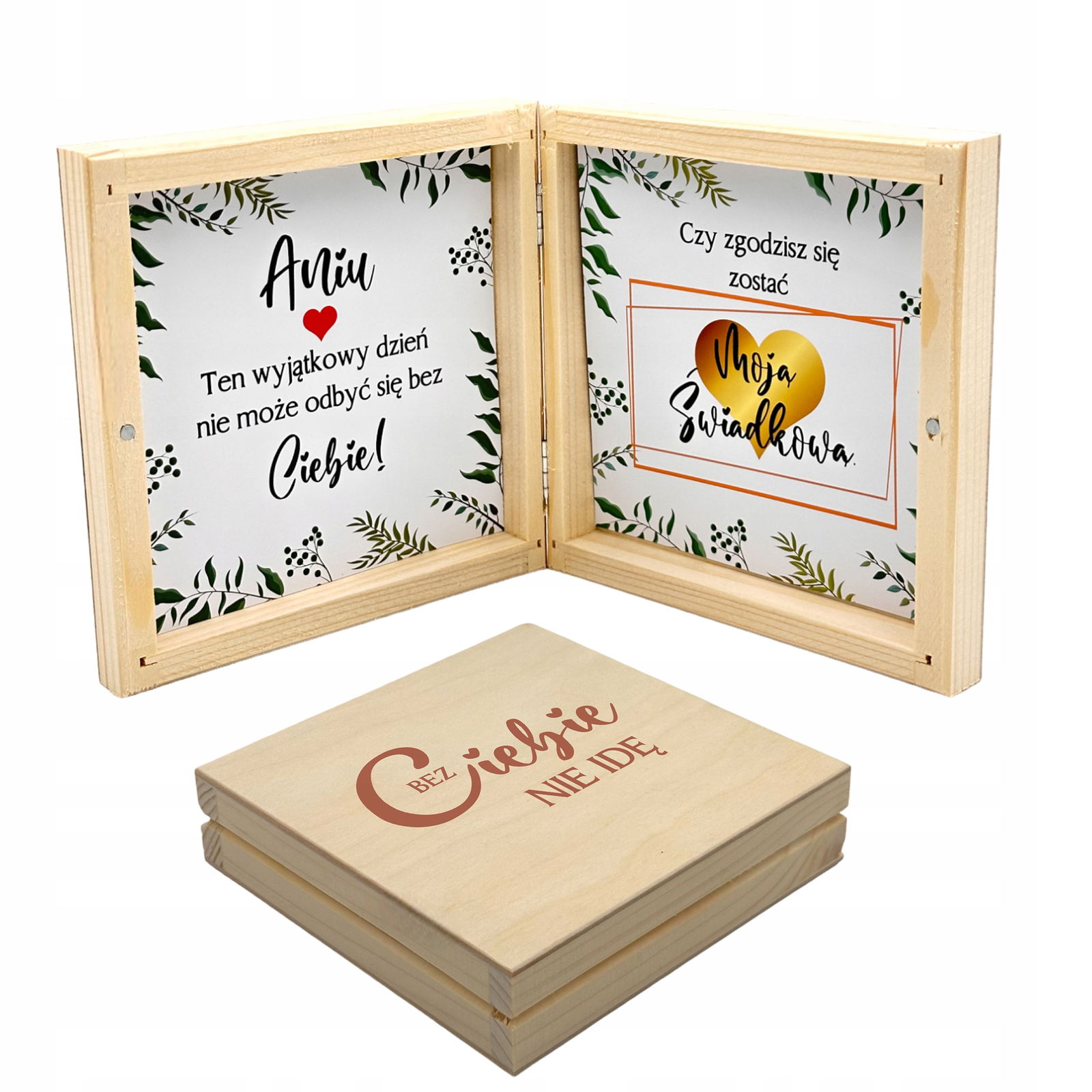 Prośba o Świadkowanie w Drewnianym Pudełku Zaproszenie Dla Świadkowej W Pudełku z Grawerem - Bez Ciebie Nie Idę.