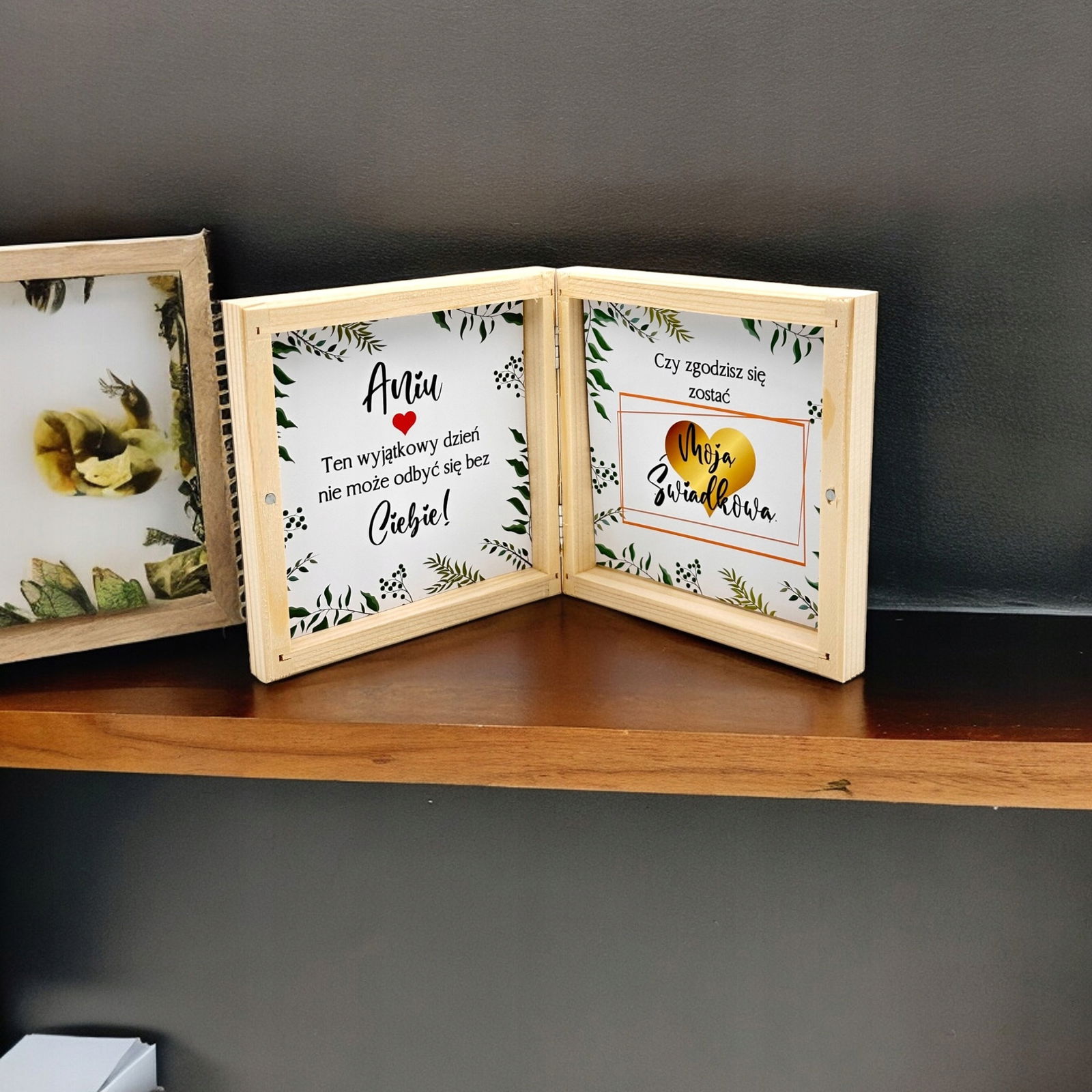 Powiedz Twojej przyszłej świadkowej, że bez niej nie idziesz – wręcz jej zaproszenie na ślub dla świadkowej w pięknym drewnianym pudełku.