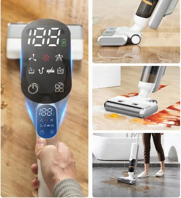 - Funkcje specjalne: Odkurzacz na mokro i sucho i mop do twardych podłóg, samoschnący i samoczyszczący, konstrukcja podwójnego zbiornika, wyświetlacz LED, idealny do lepkich zabrudzeń i sierści zwierząt, długi czas pracy, prowadzenie głosowe, lekki i samobieżny