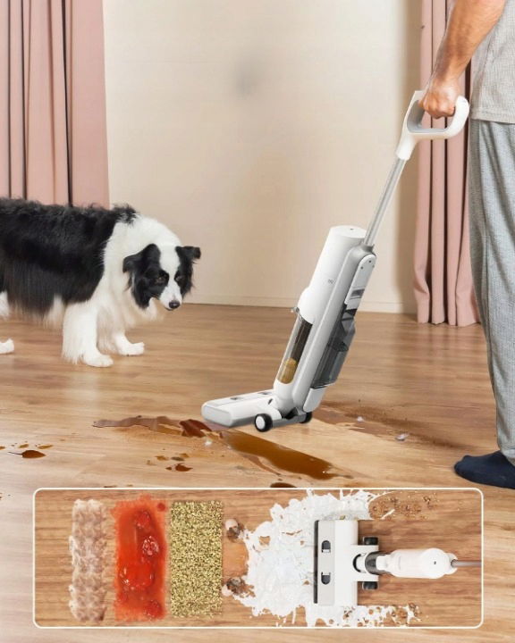 Odkurzacz F10 Pro jest lekki, zwrotny i samobieżny, dzięki czemu bez wysiłku porusza się po całym domu. Doskonale sprawdza się na twardych podłogach, kaflach czy panelach – skutecznie usuwa sierść, błoto, rozlane płyny, resztki jedzenia, a nawet jajka.