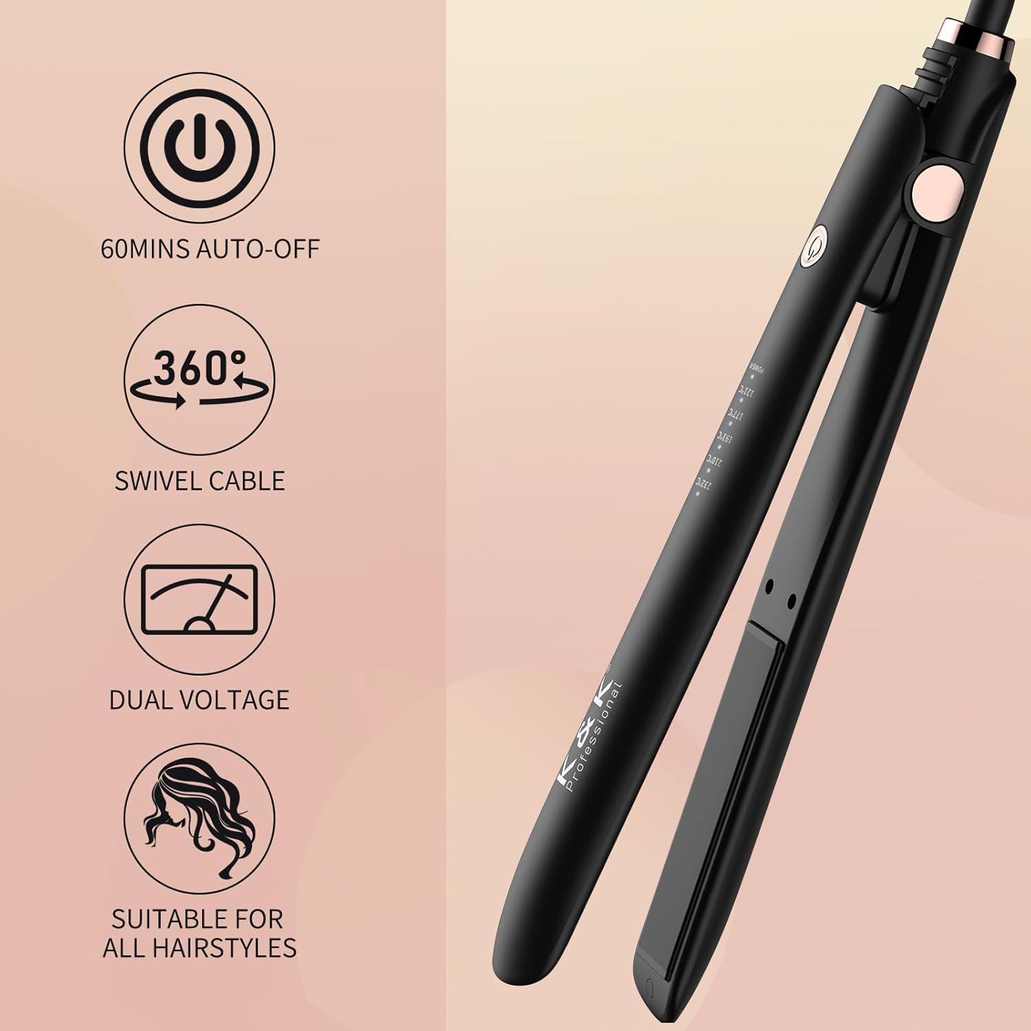Prostownica K&K QY-1123 Black 230°C Ceramiczna do włosów