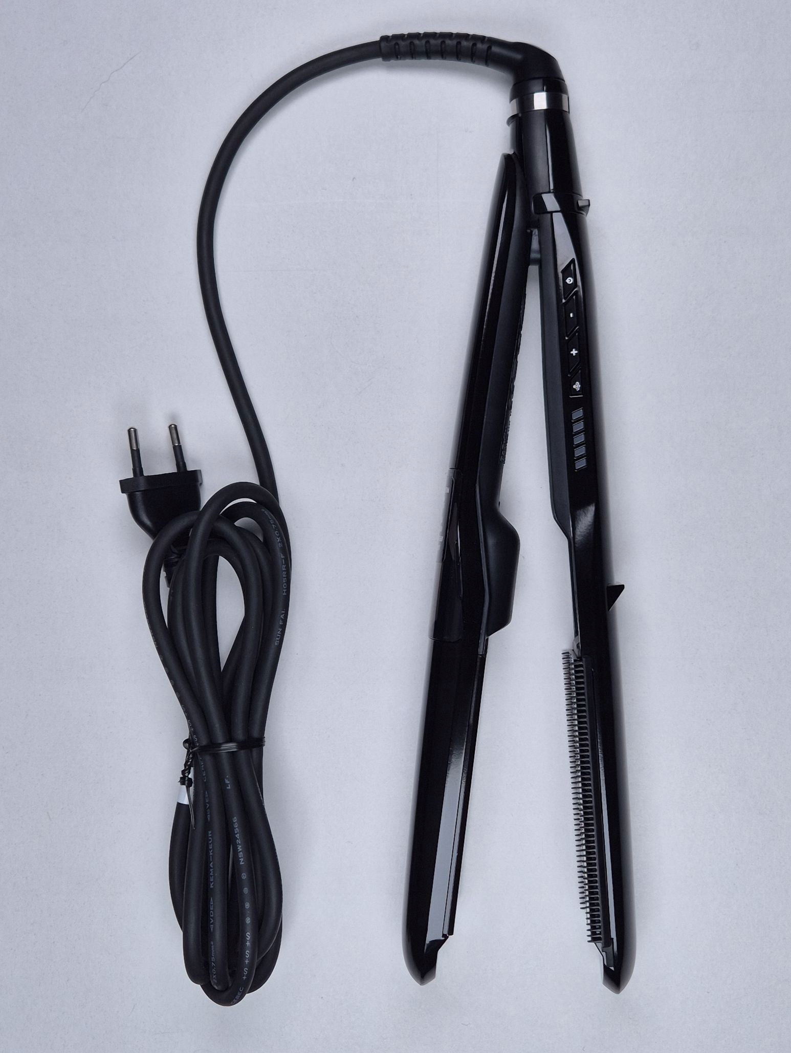 - Zakres temperatury: 150°C – 230°C – pięć poziomów regulacji dla wszystkich typów włosów.